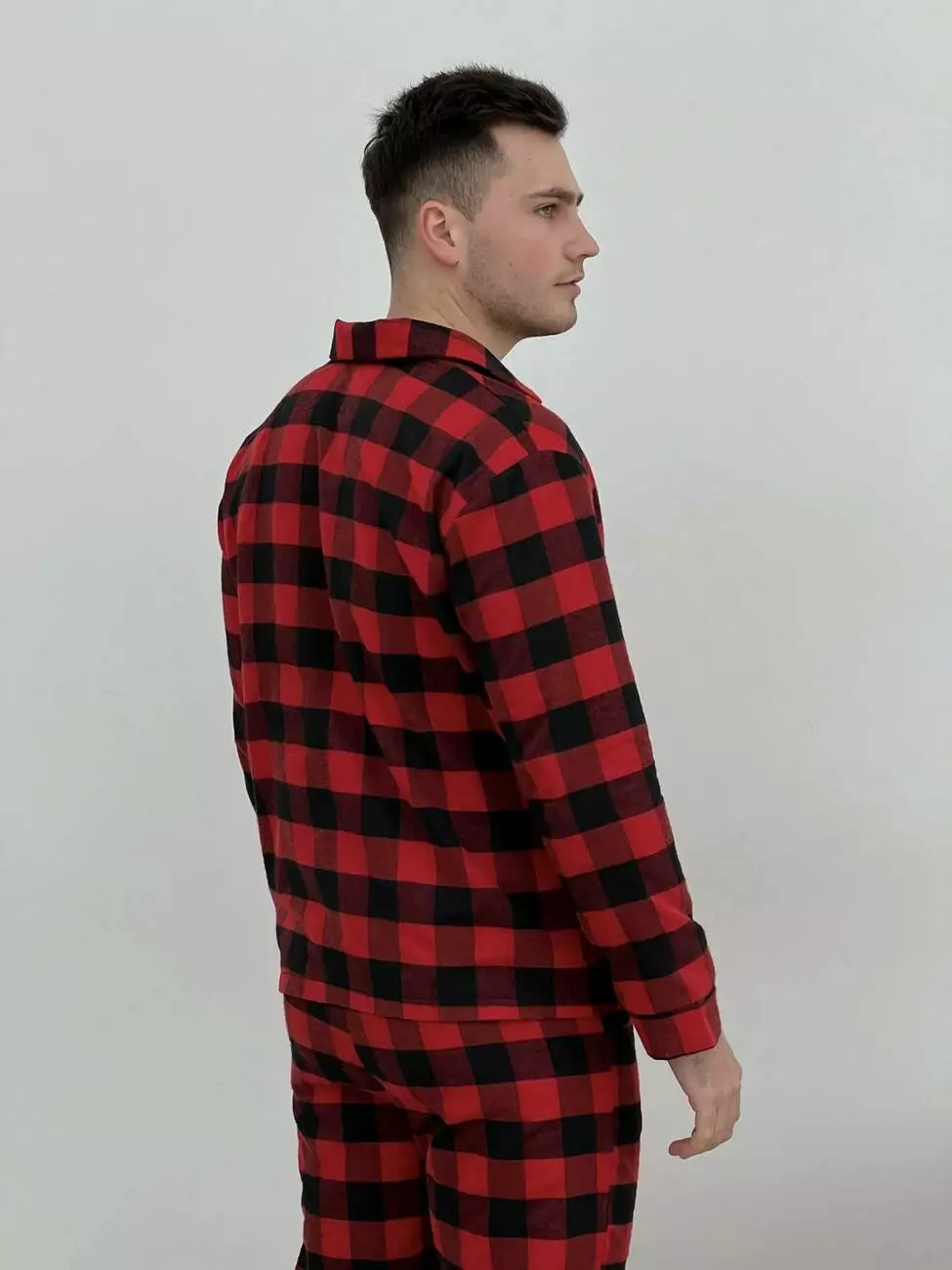 Піжама чоловіча COSY з фланелі (штани+сорочка) клітина червоно/чорна