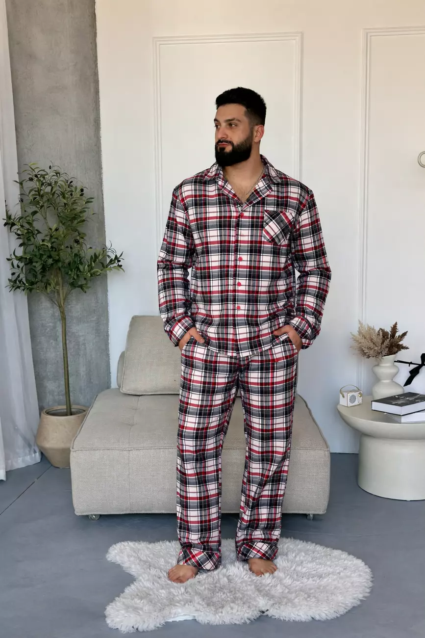Стримана бордово-сіра клітинка на білому тлі виглядає лаконічно й стильно. Це універсальний дизайн, який ідеально підходить для зимових вечорів, повільних ранків та спокійних вихідних удома. Фланель найвищого ґатунку створена для максимального комфорту. Вона м’яка, гіпоалергенна, приємна до тіла та дозволяє шкірі дихати. У ній тепло, затишно та комфортно протягом усього часу носіння.