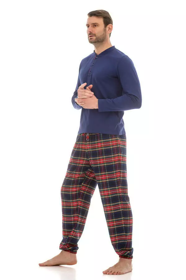 Піжама чоловіча лонгслів із куліру та фланелеві штани