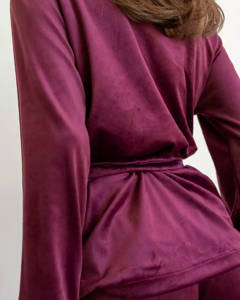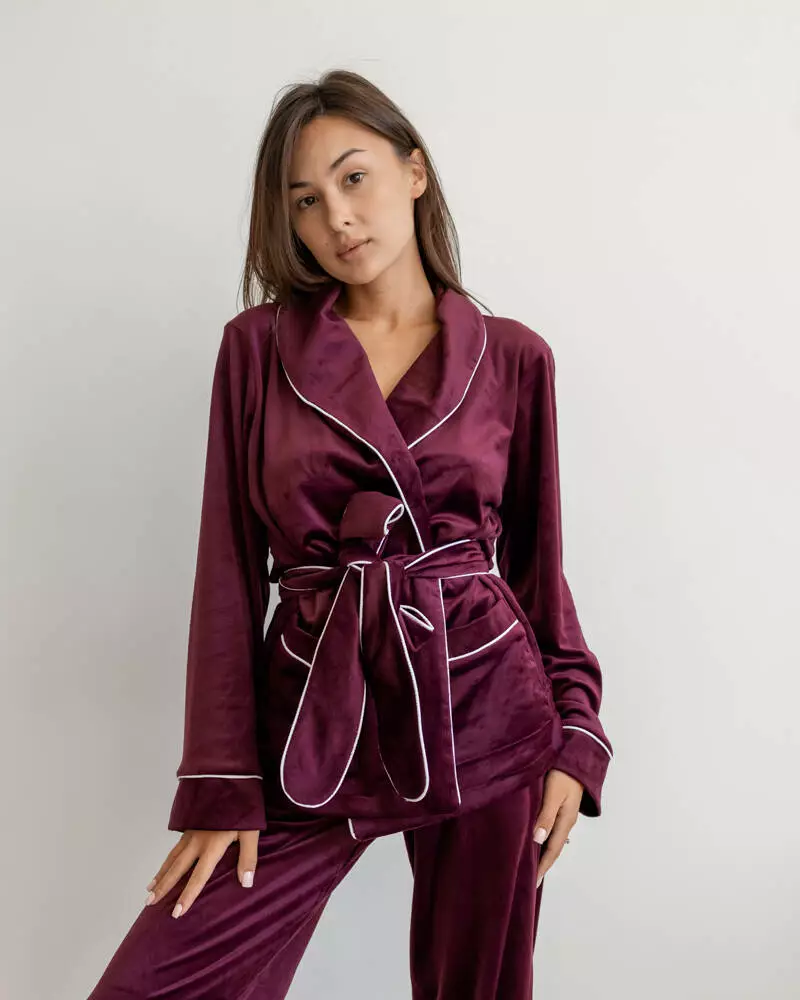 Жіноча піжама з велюрової тканини. Комплект складається з довгої сорочки з кишенею на грудях та штанів вільного крою на резинці. Жіночий костюм ідеально підходить для сну та домашніх справ. Тканина майже не мнеться, добре пропускає повітря і не втрачає колір при пранні. Увага, піжама розміру XL на замовлення: пошиття такої краси займе 2-3 дні