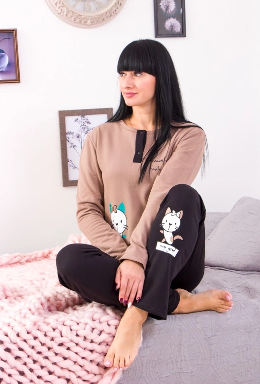 Якщо ви любите зручні та комфортні домашні речі – цей жіночий домашній костюм від ТМ «Трикотажний край» вам точно підійде! Жіноча піжама зі штанами виконана з якісної та м'якої 100% бавовни. Легке, ніжне полотно, що дихає, не скочується і не деформується при носінні. Цей домашній одяг стриманого та лаконічного забарвлення підкреслить ваш смак. Затишна піжама складається з футболки з довгим рукавом та піжамних штанів. Зручні штани на гумці на талії не обмежать руху навіть під час активної гри з дитиною чи прибирання. У цій піжамі ви виглядатимете ефектно і красиво в домашній обстановці. Домашній одяг для жінок – річ, яку хочеться отримати у подарунок.