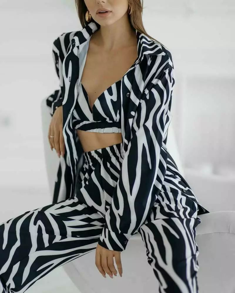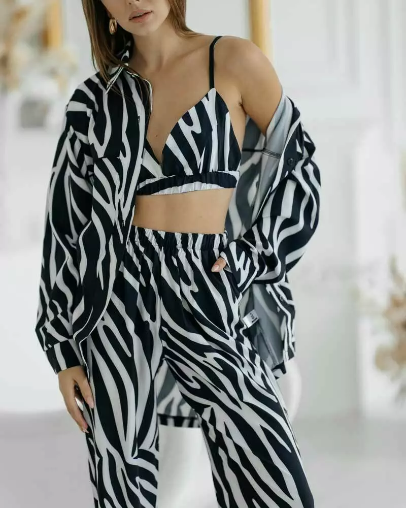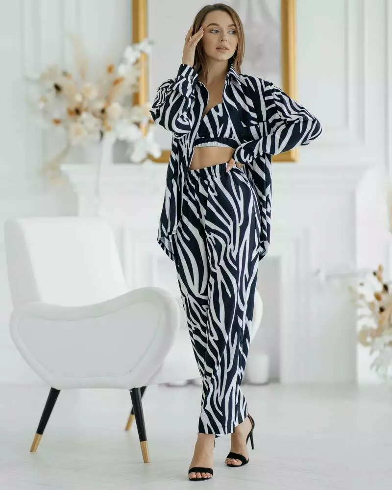 Сорочка прямого крою із застібкою на ґудзиках та відкладним коміром. Штани з еластичною резинкою на талії не обмежують руху завдяки вільному крою. Комплект домашнього одягу з топу, штанів та сорочки вільного крою підкорить вас своєю витонченістю. Комплект із 3-х речей відмінно підійде як для вагітних, так і як одяг для дому. Сорочка чудово поєднується з купальником і сміливо можна брати на пляж. Костюм йде з якісної тканини софт. Дуже приємна до тіла.