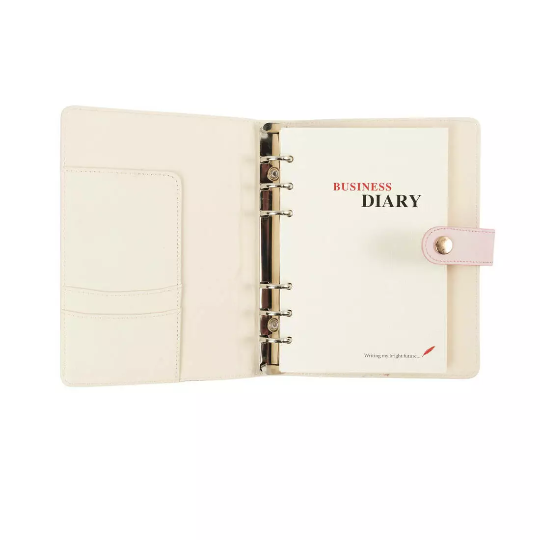 один з одним. Блокнот закривається на кнопку, має 6 круглих кілець,