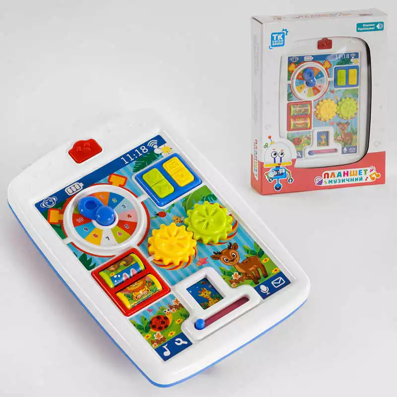Планшет інтерактивний 90660 (24) "TK Group", ОЗВУЧ. УКРАЇНСЬКОЮ МОВОЮ, світло, казка, пісні, аналоговий годинник, тріскачка, шестерні, в коробці