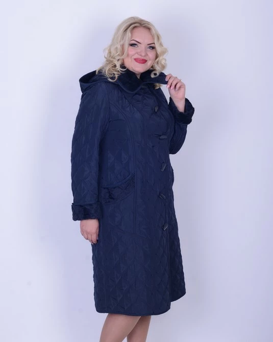 Демисезонный женский плащ. Стеганный снаружи, внутри имеет текстуру короткого меха. Крой ровный, капюшон отстегивается, воротник отложной.Два накладных кармана с кисточка. Застежка - пуговицы. Пояс в комплекте. Длина изделия 95 см. Размерный ряд модели - 50-60.