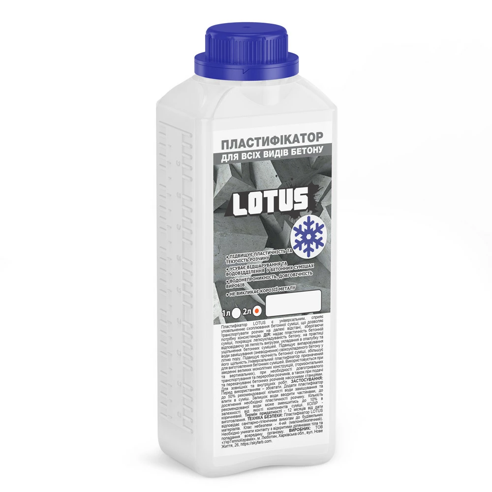 Пластификатор для всех видов бетона противоморозный LOTUS 2л