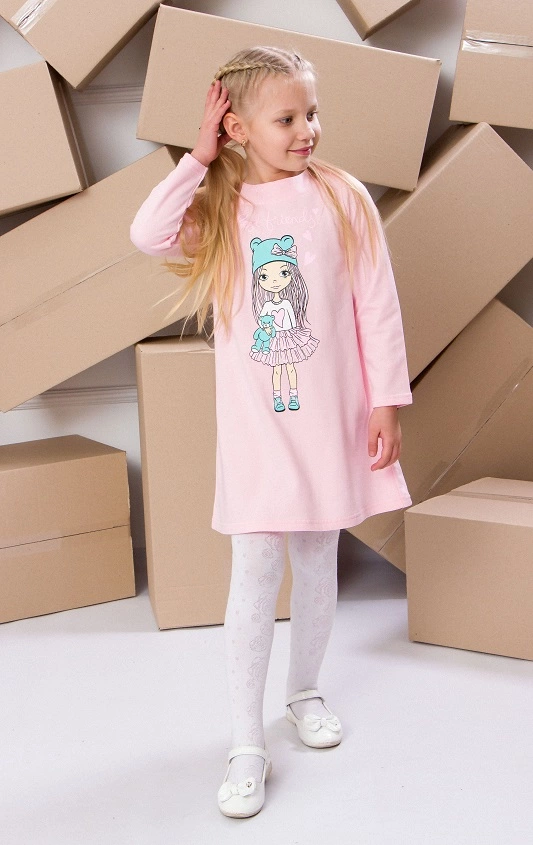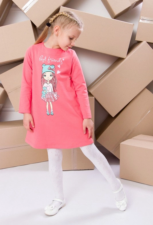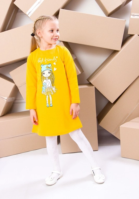 Шикарне плаття з довгим рукавом з натурального полотна для справжньої принцеси. Після прання дає усадку по довжині на 1-2 см. Рекомендується прати при температурі не більше 30 градусів. У цьому  платті ваша дівчинка завжди буде виглядати красиво. Спереду плаття прикрашене яскравим накатом. Буде прекрасним поповненням гардеробу вашої модниці.