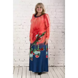 Тканина: кукурудза - 65% віскоза; 30% поліестер; 5% еластан. Красива, стильна сукня виготовлена з тканини трикотаж кукурудза. Рукав довгий, горловина кругла, прикрашена мереживом. Принт омбре з двох кольорів і красивий природний принт у вигляді краплі. Тканина досить тепла, не потребує особливого догляду.