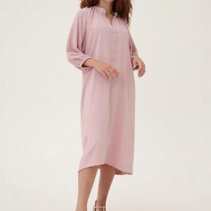 Сукня вільного крою, з об'ємним рукавом 3/4, горловина оброблена