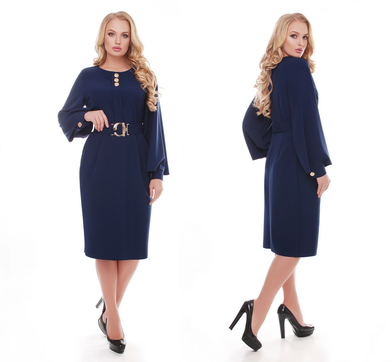 Платье полуприталенное, зауженное к низу, с втачными рукавами,