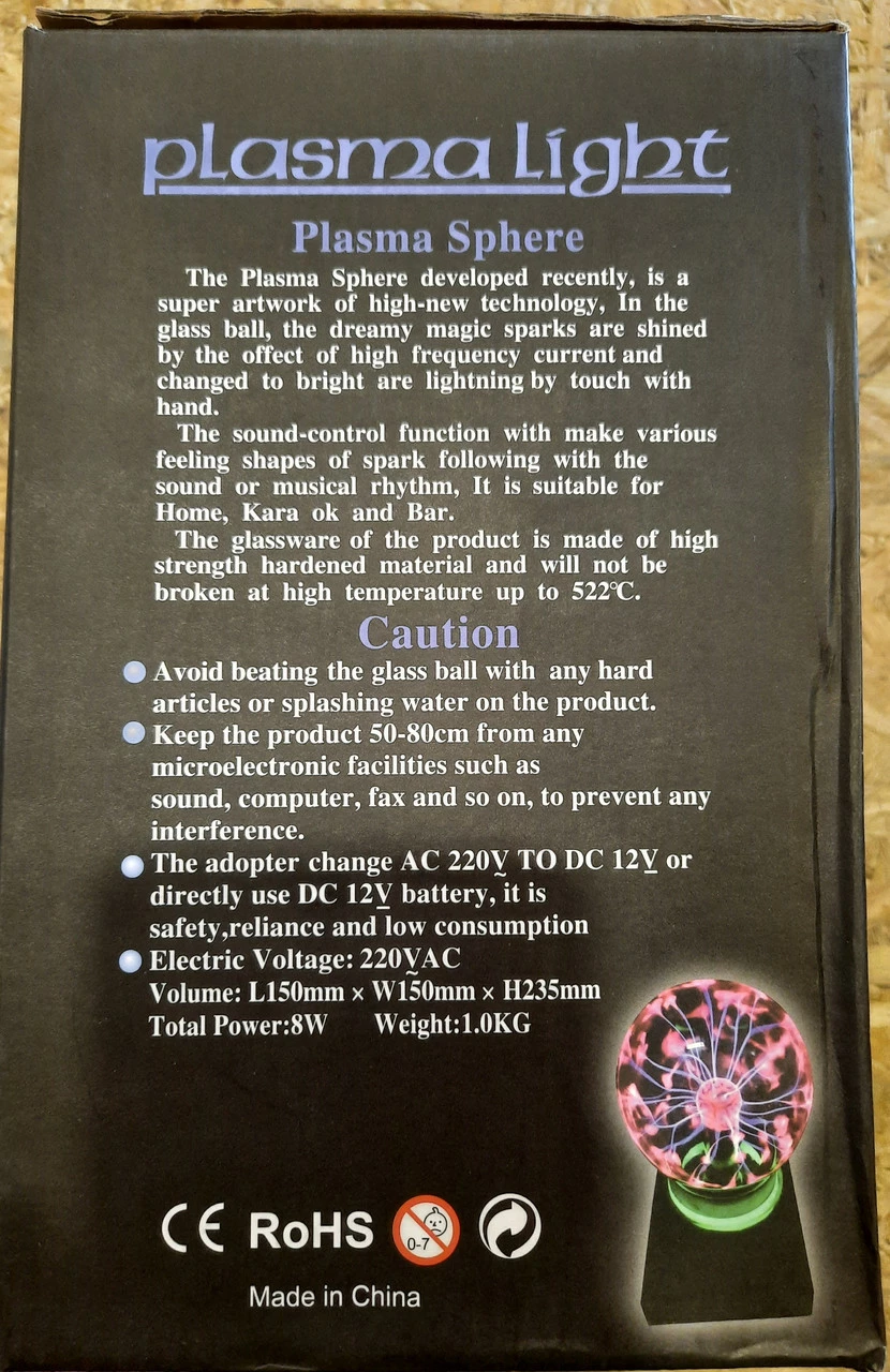 Плазменный шар молния Plazma Light диаметром 12.5см (5 дюймов)