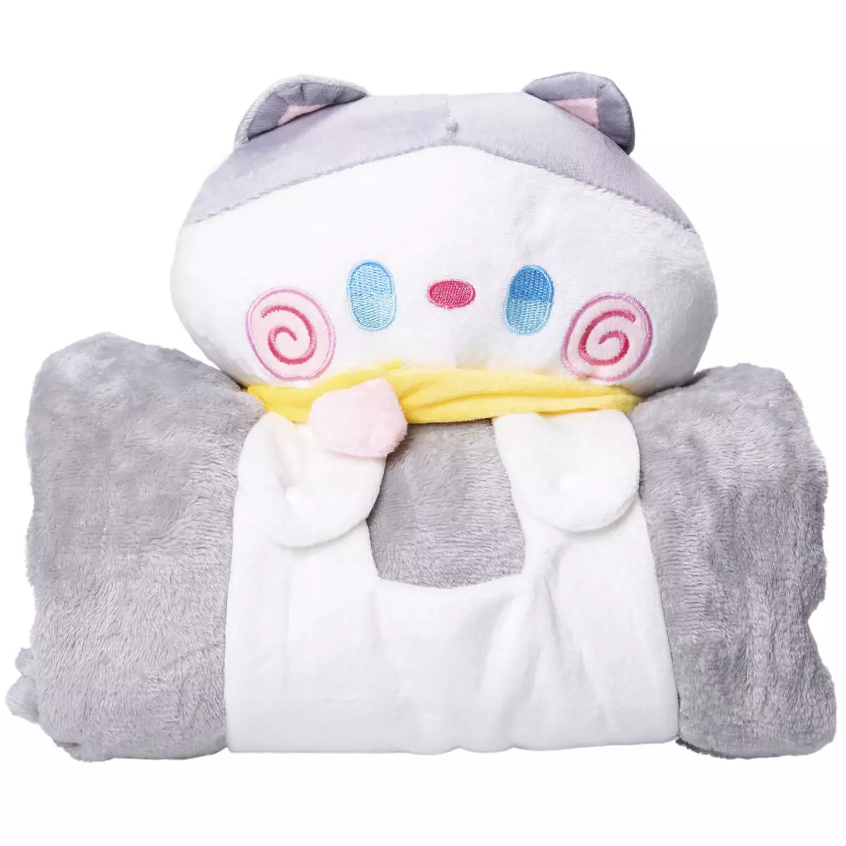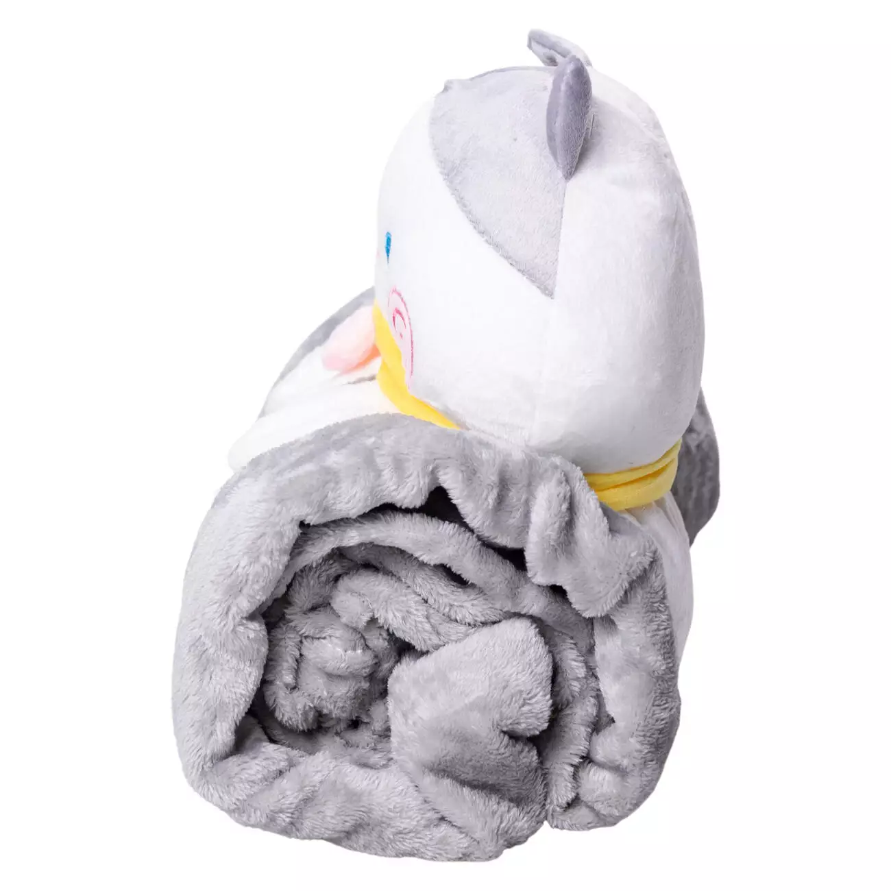 Дитяча іграшка з пледом – чудовий вибір для створення затишку в будинку. Плед згортається в рулон і фіксується тканинними лямками на кнопках, що перетворює його на компактний валик-іграшку. Це робить аксесуар ідеальним доповненням дитячого ліжечка, поїздок та подорожей, затишних вечорів удома. Він замінить одразу два предмети — м'яку іграшку та плед, який завжди під рукою. Компактний формат дозволяє брати його із собою в дорогу, а кумедний дизайн обов'язково сподобається дітям.