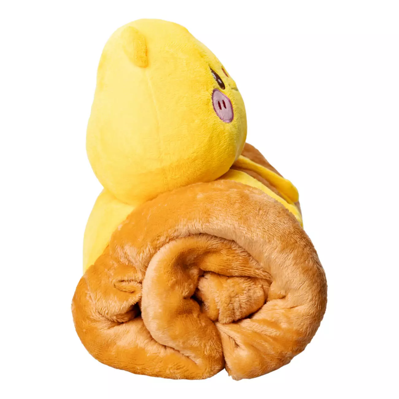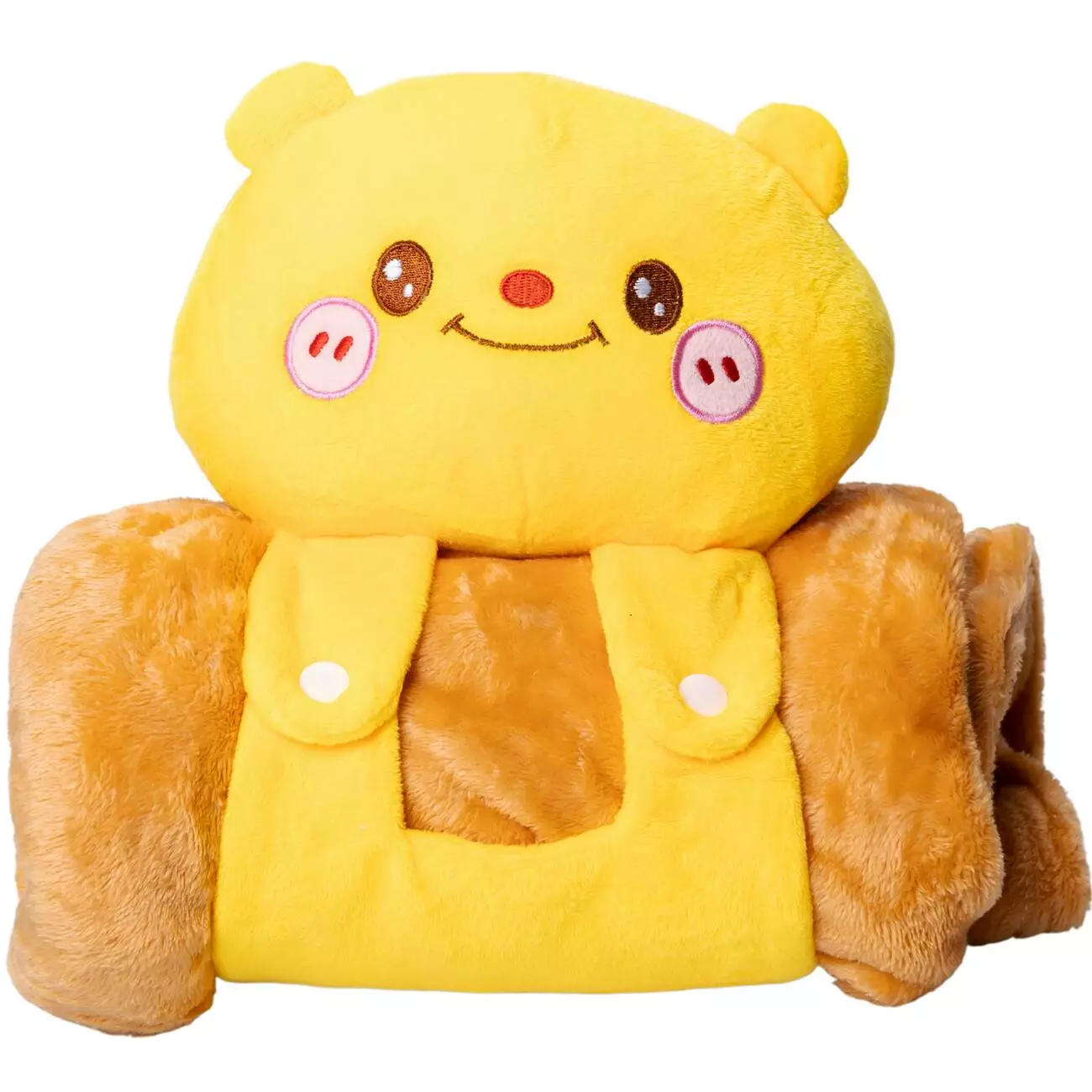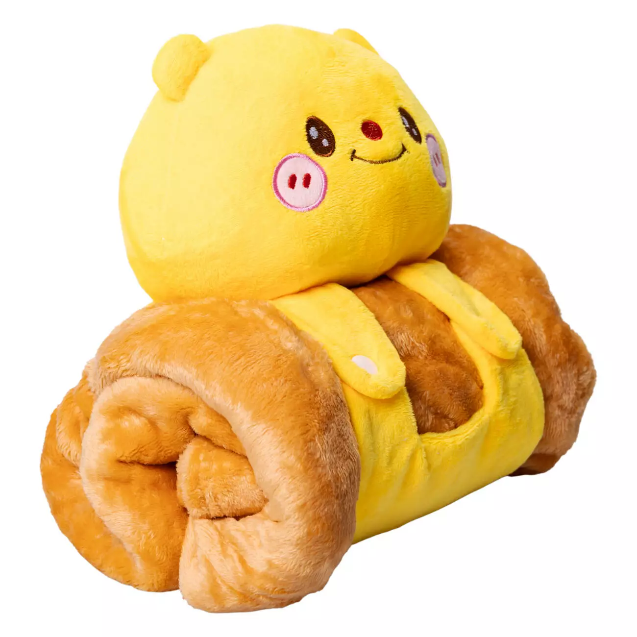 Дитяча іграшка з пледом – чудовий вибір для створення затишку в будинку. Плед згортається в рулон і фіксується тканинними лямками на кнопках, що перетворює його на компактний валик-іграшку. Це робить аксесуар ідеальним доповненням дитячого ліжечка, поїздок та подорожей, затишних вечорів удома. Він замінить одразу два предмети — м'яку іграшку та плед, який завжди під рукою. Компактний формат дозволяє брати його із собою в дорогу, а кумедний дизайн обов'язково сподобається дітям.