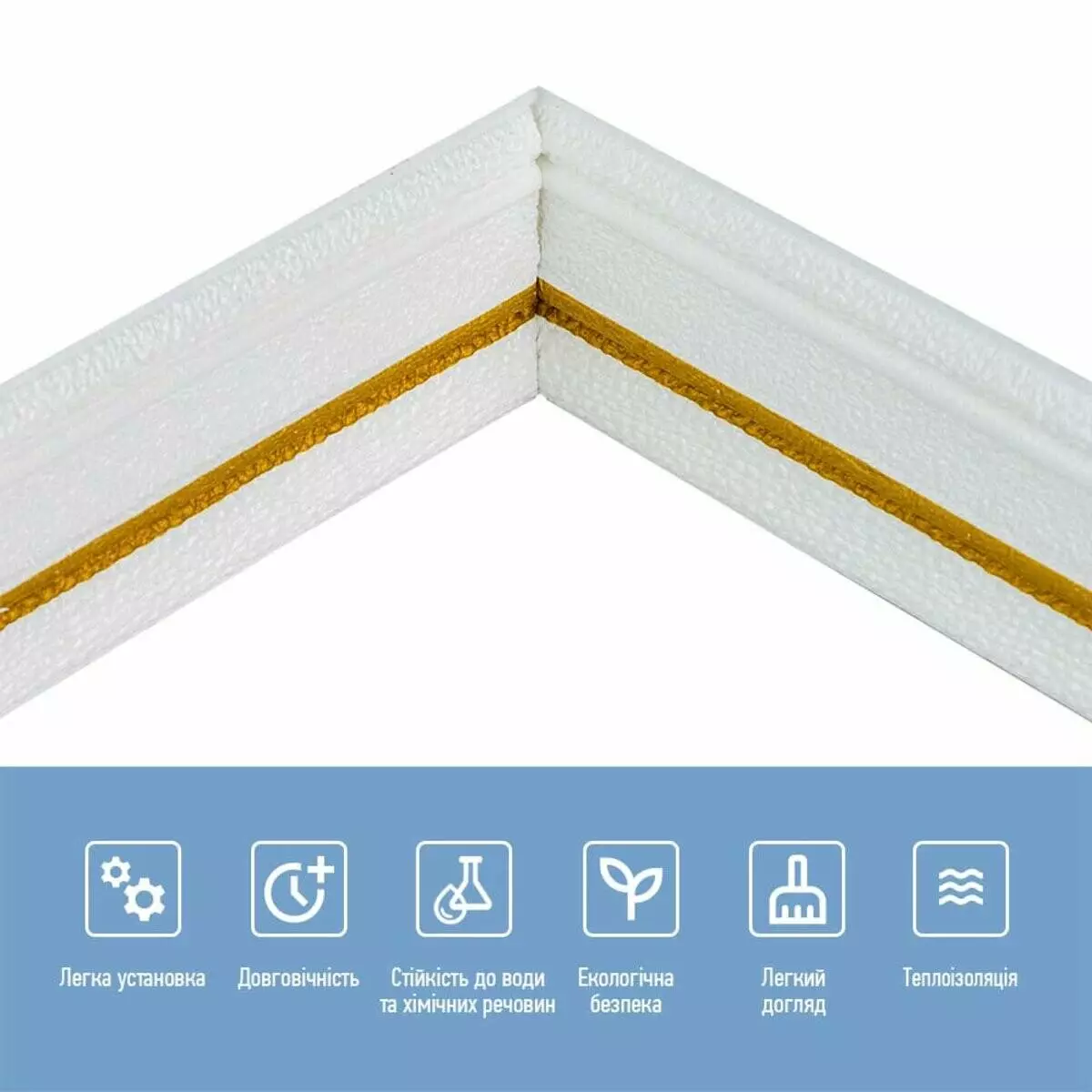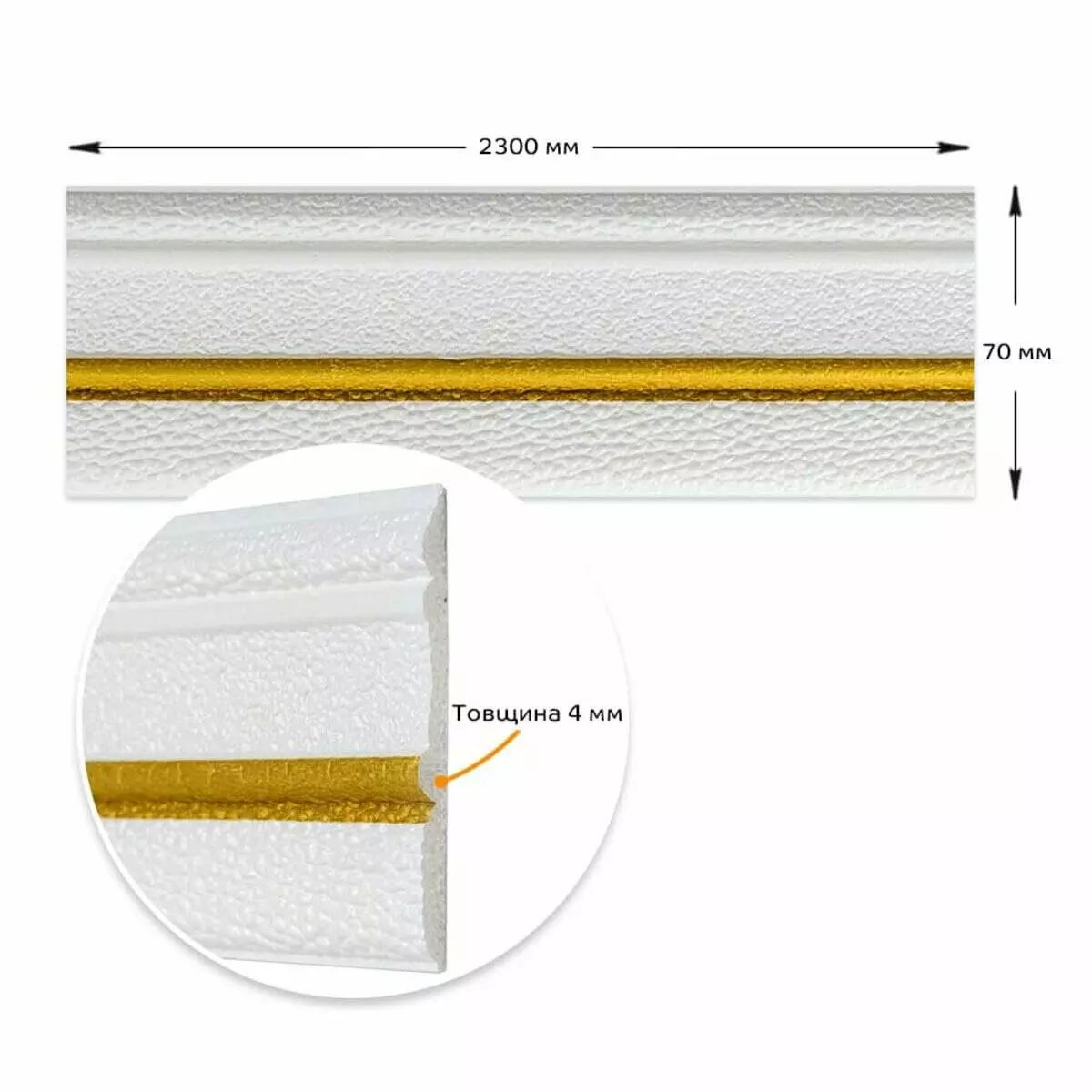 Плінтус РР самоклеючий 2300х70х4мм Білий з золотою смужкою (D) SW-00001832