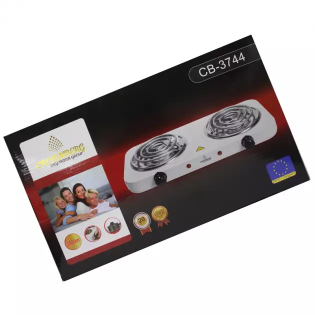 Плита имеетдве конфорки, зі спіральним нагрівальним елементом.