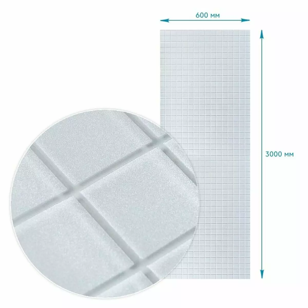 Площа покриття: 600х3000 мм – 1,8 м²