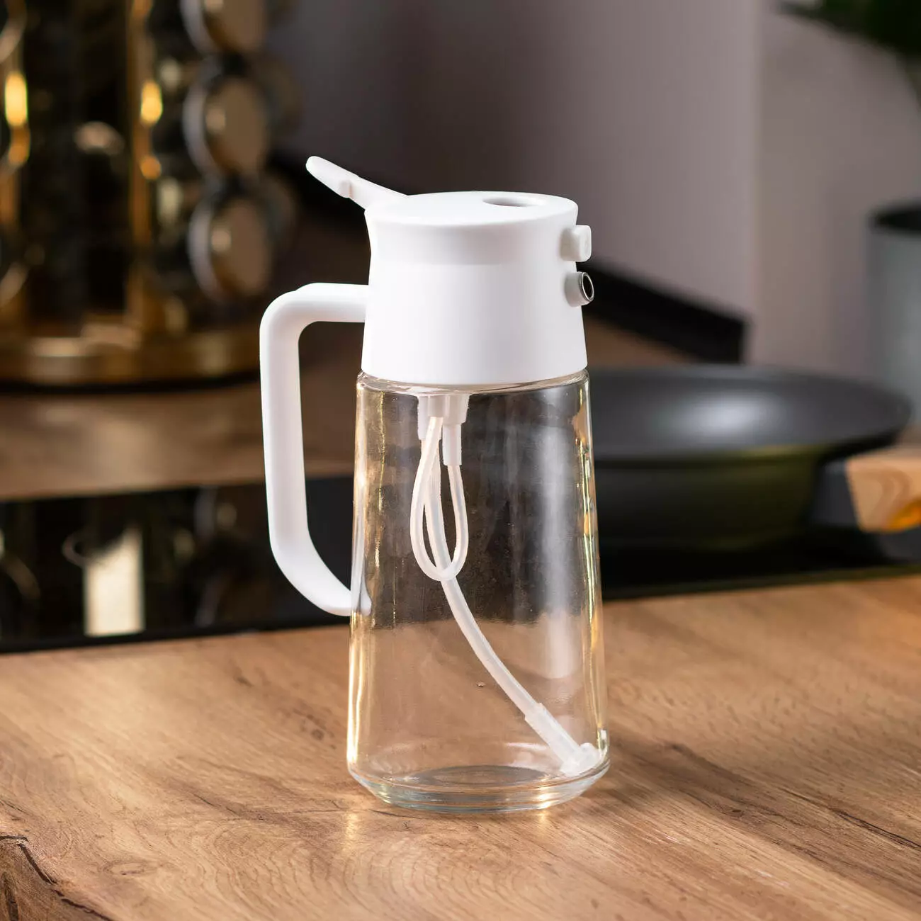 Виготовлена з міцного скла та оздоблена білим розпилювачем, пляшка стане елегантним доповненням до будь-якого інтер'єру. Розпилювач герметично закривається, щоб зберегти свіжість олії та оцту, а також забезпечує рівномірне розпилення, що робить процес приготування їжі більш комфортним.