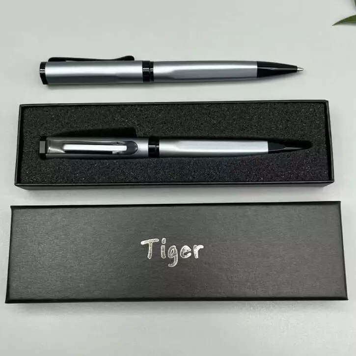Стильная подарочная ручка Tiger — практичный аксессуар, который сочетает элегантность и удобство. Серебристый корпус с черными элементами подчеркивает современный дизайн и делает ручку универсальной для делового стиля.