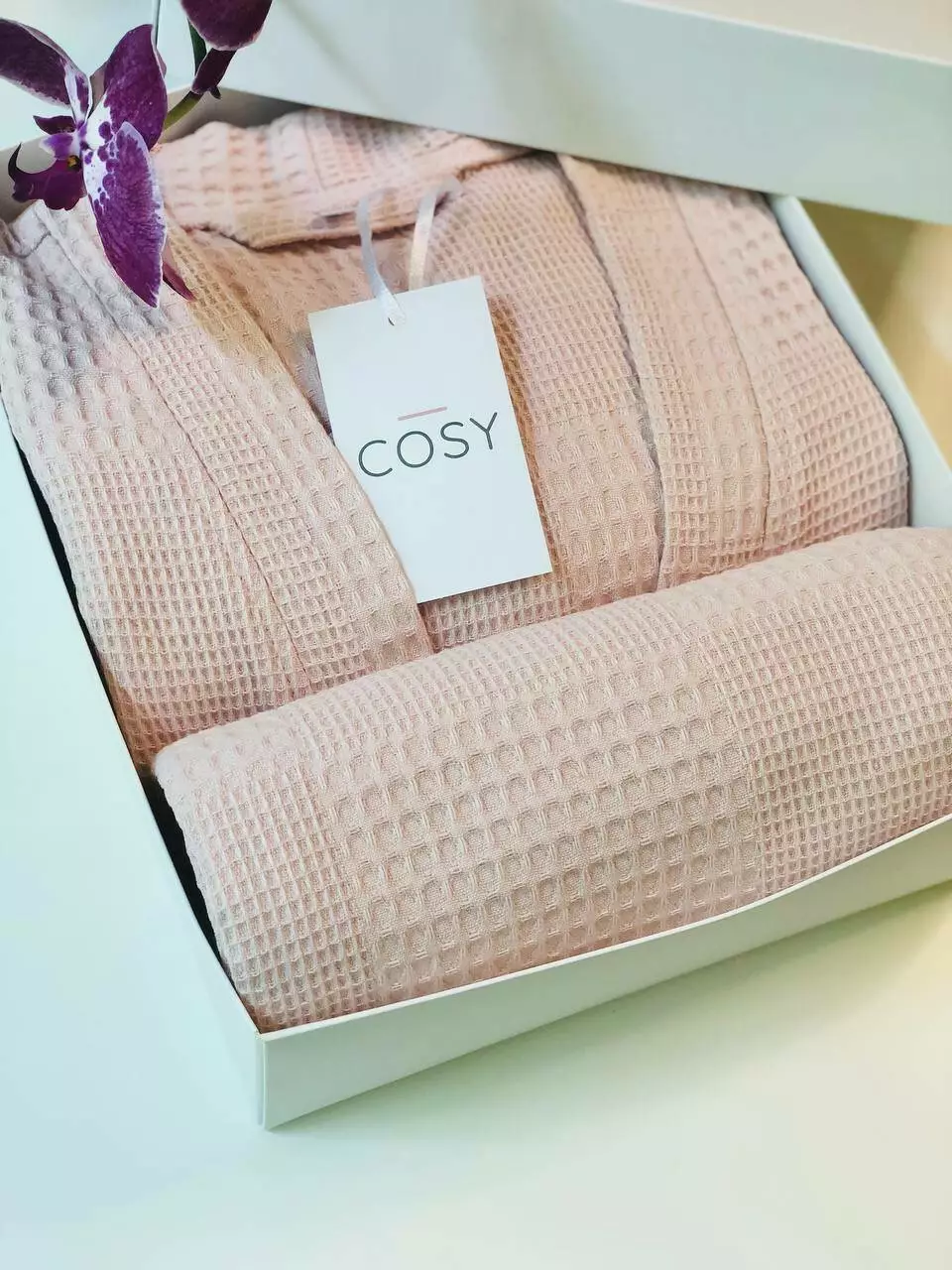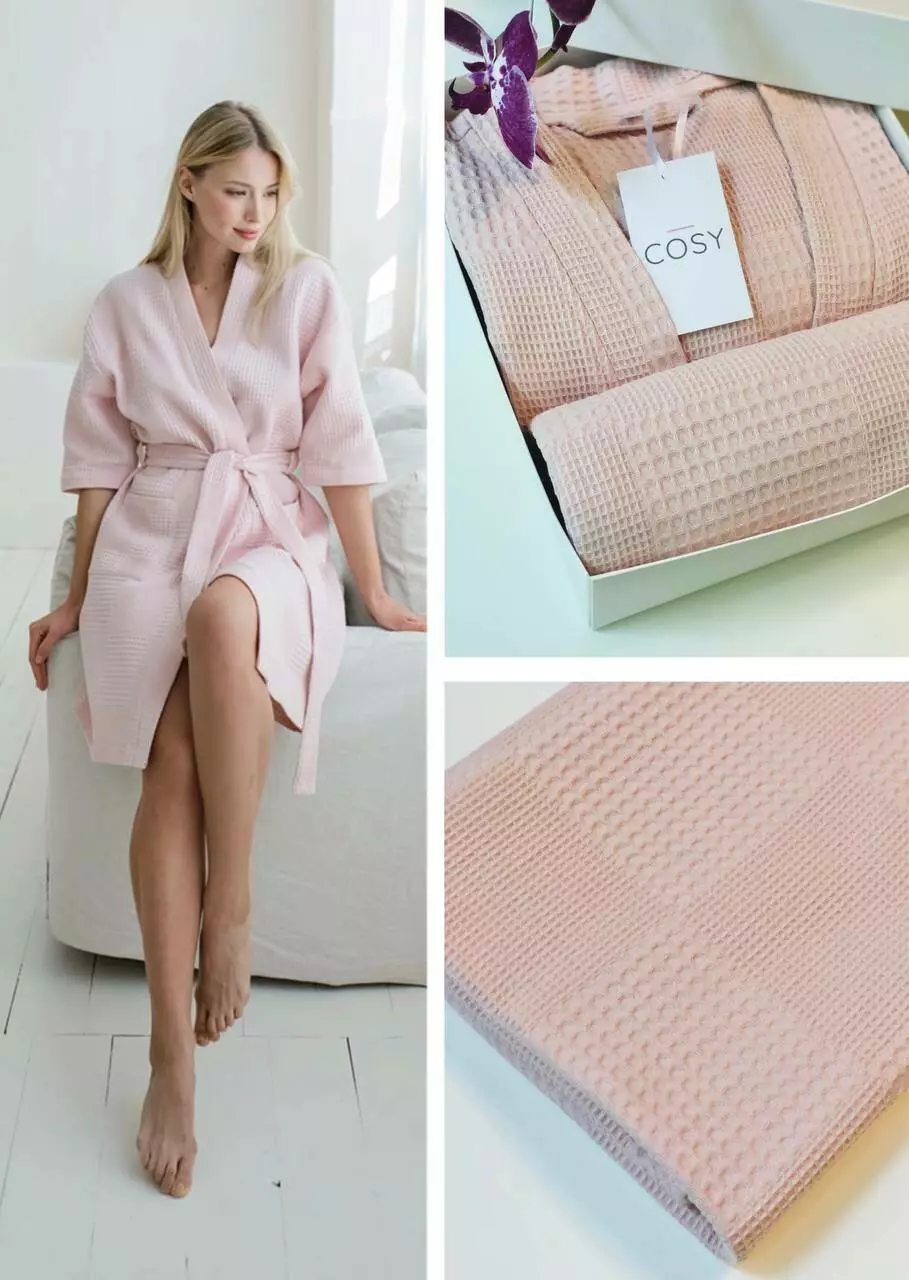 Подарунковий набір складається з халата та рушника в подарунковій коробці. Халат кімоно+ рушник банний 70*140.