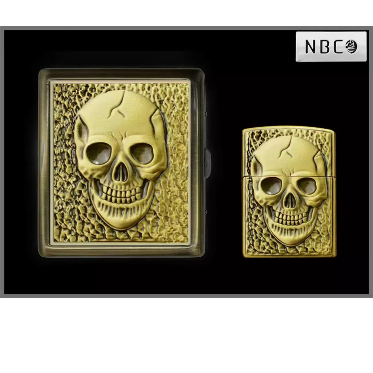 Подарочный набор : зажигалка и портсигар с черепом WKL-067