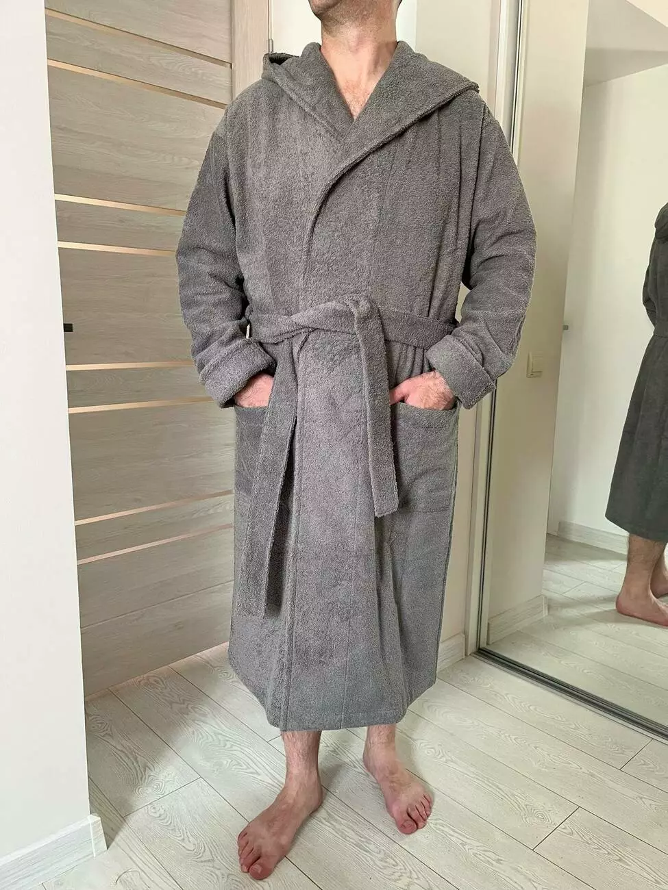 Подарунковий набір чоловічий Fortune від COSY махровий: халат шаль з капюшоном+ рушник сірий в коробці