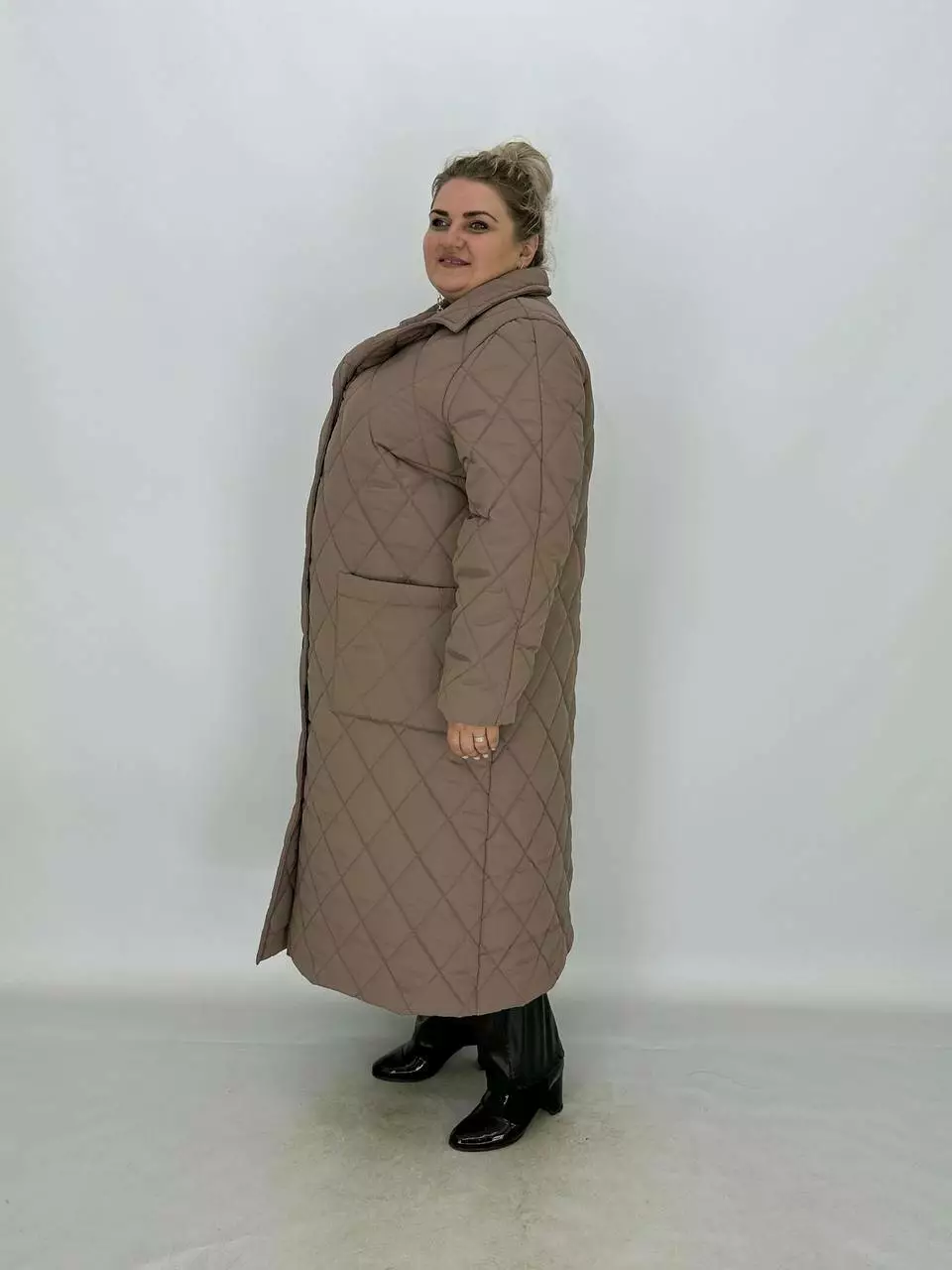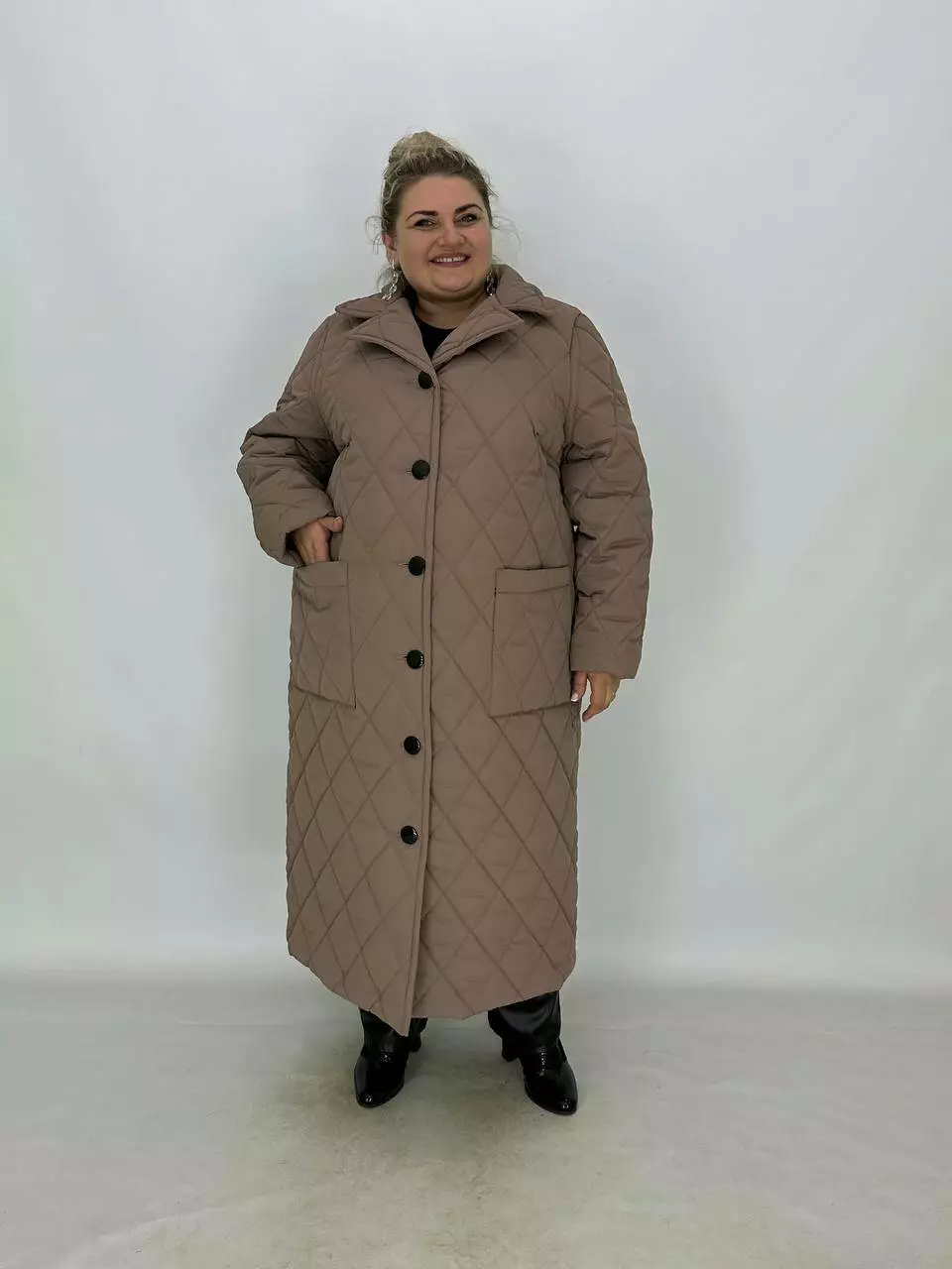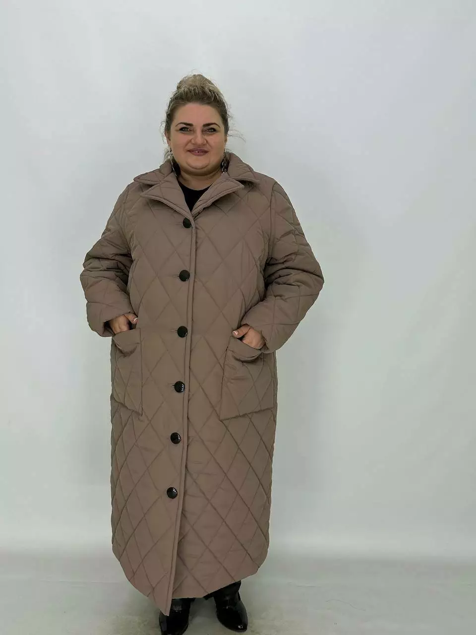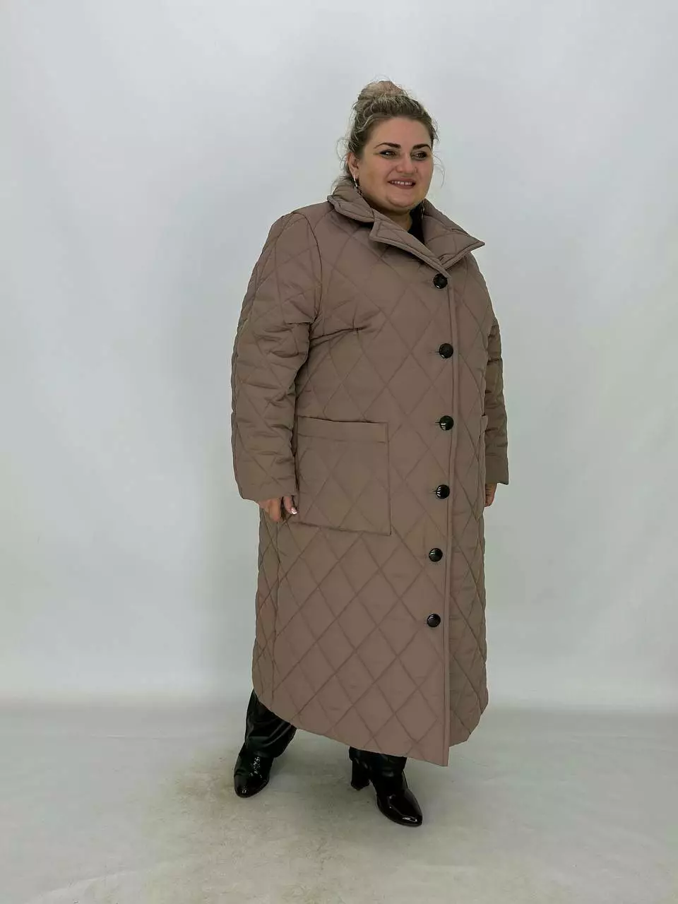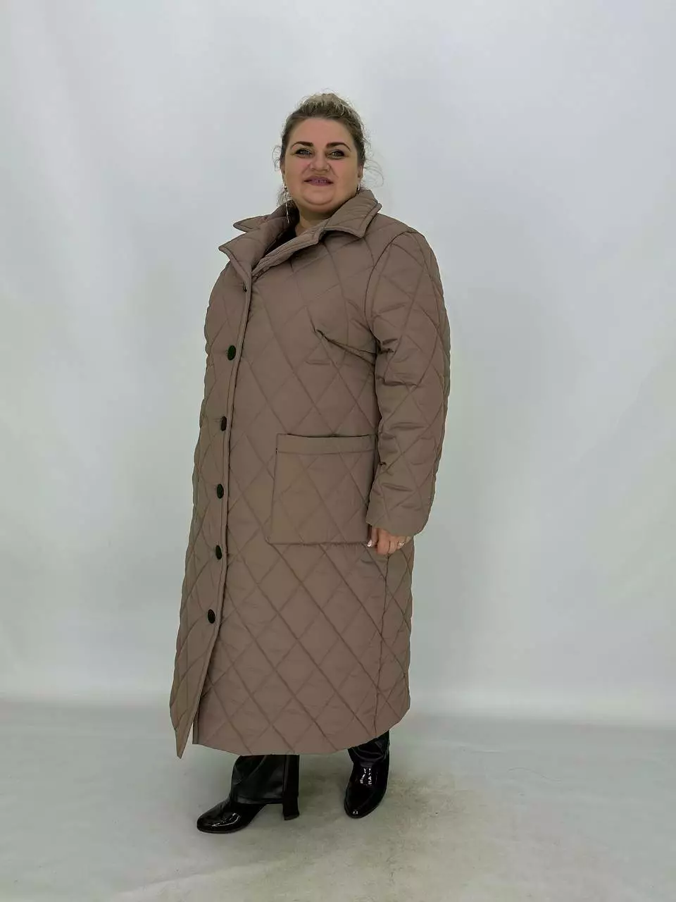 Подовжене стьобане пальто на гудзиках.