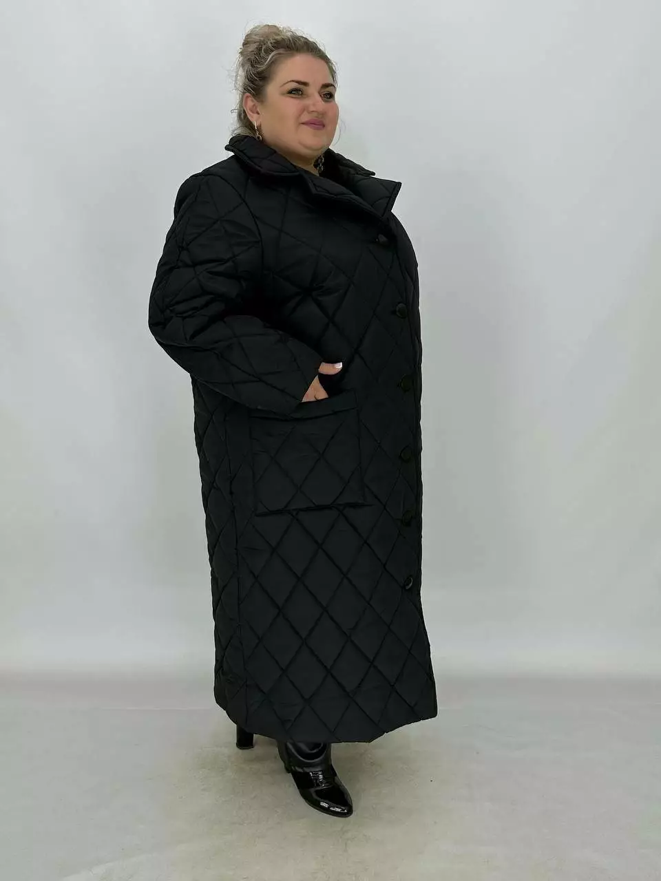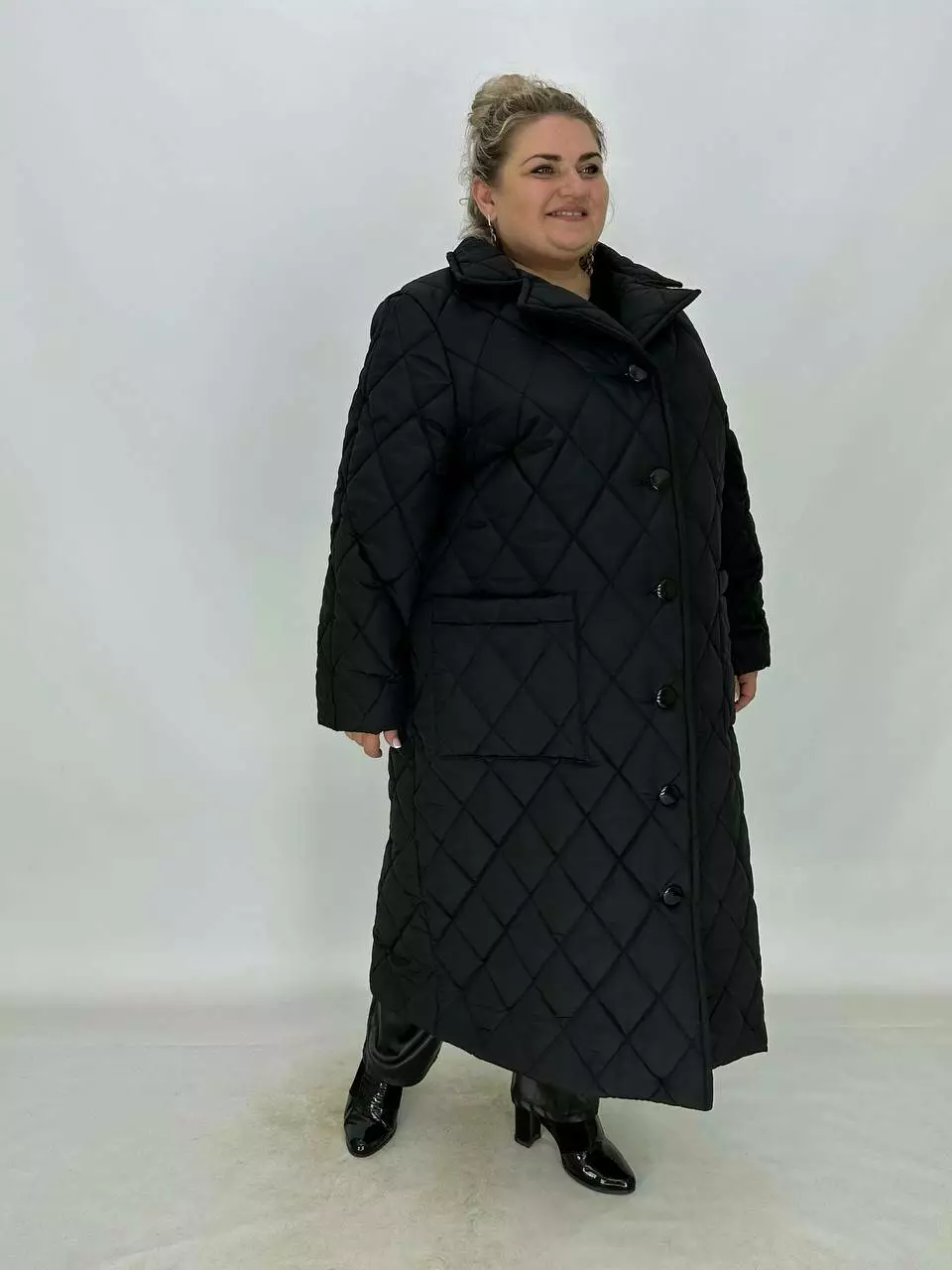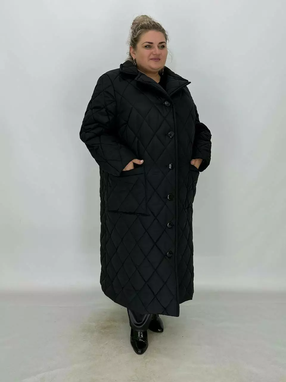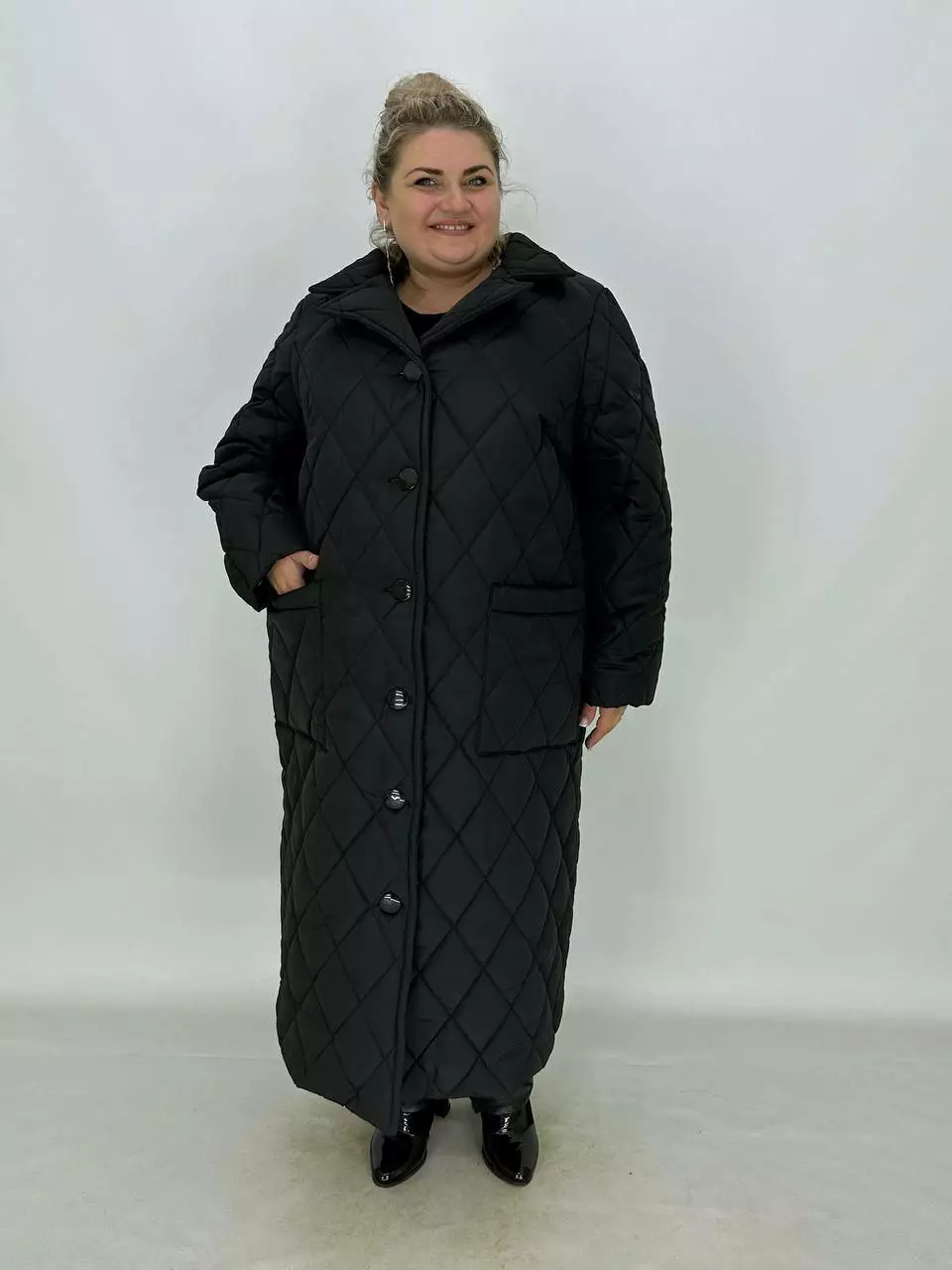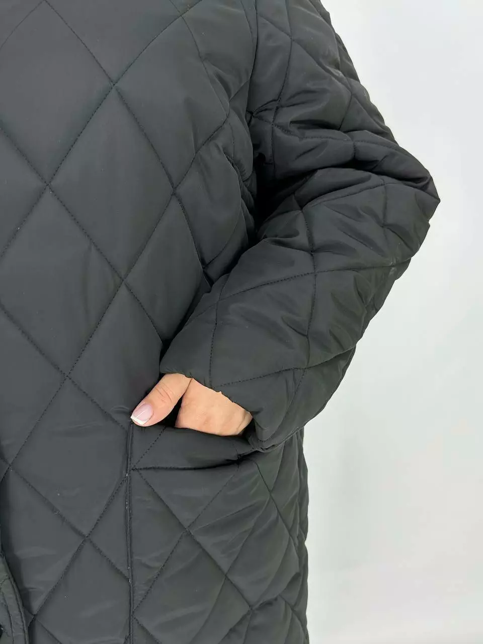 Подовжене стьобане пальто "Панянка 2" на ґудзиках Розміри 74-76