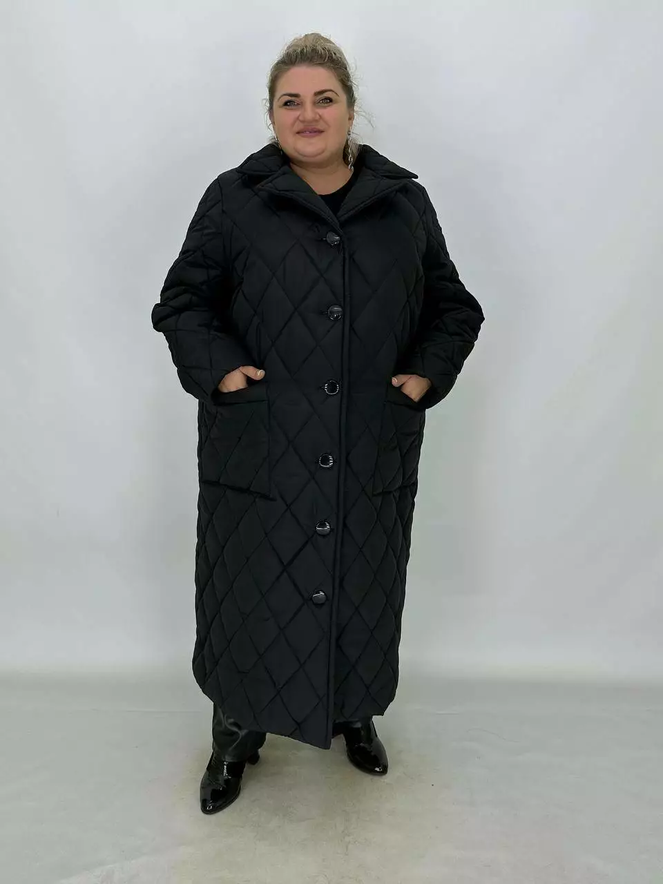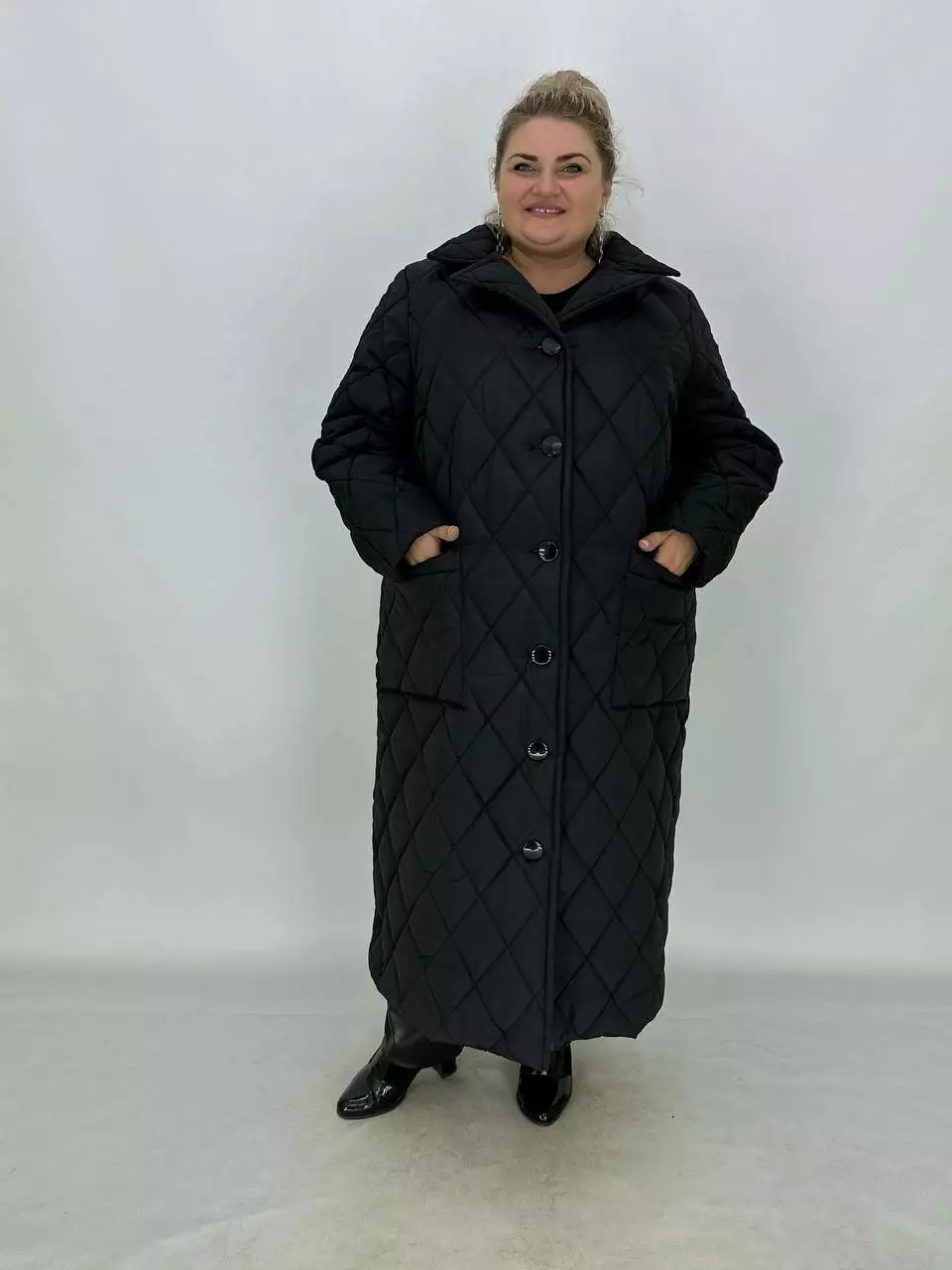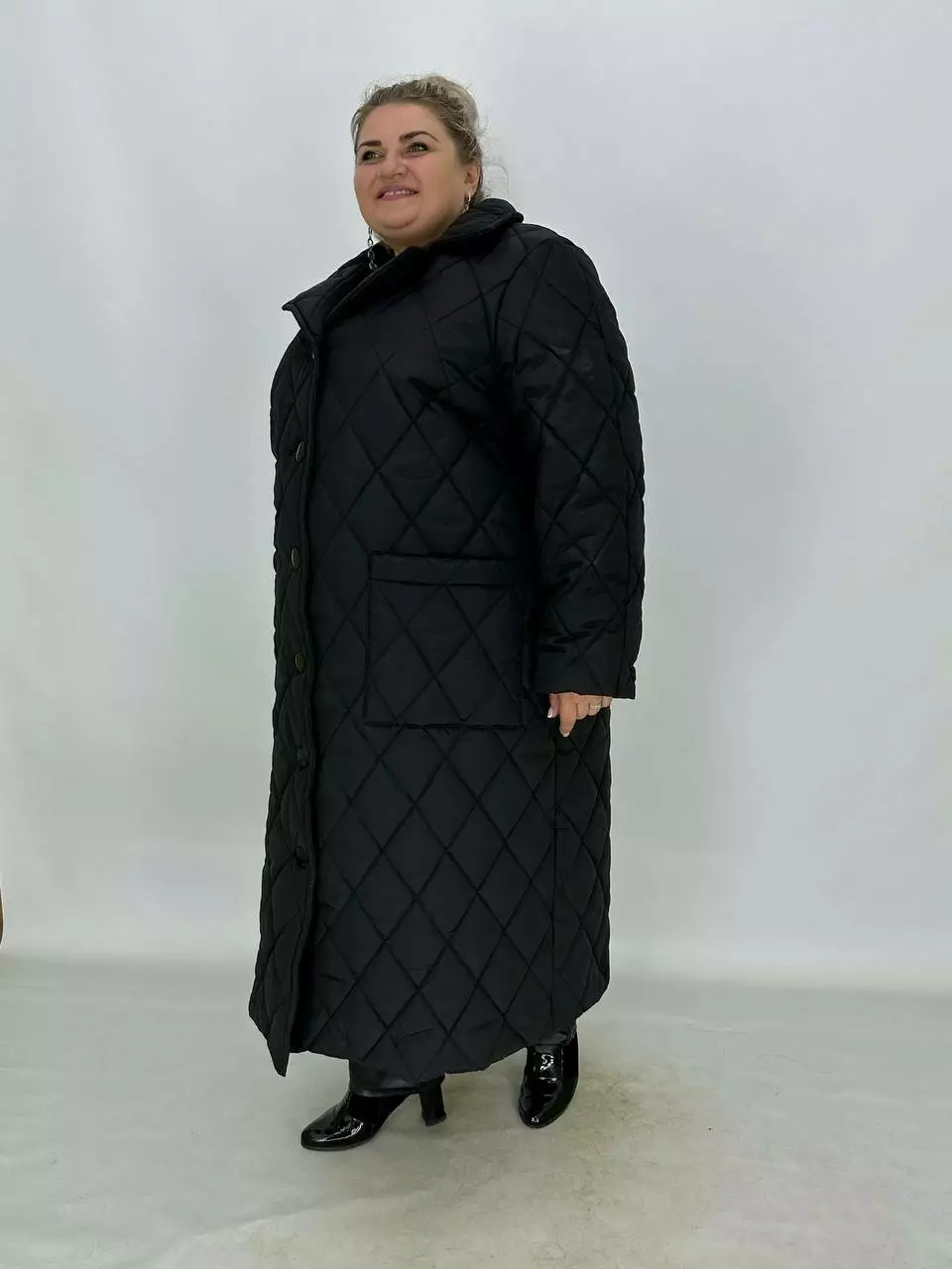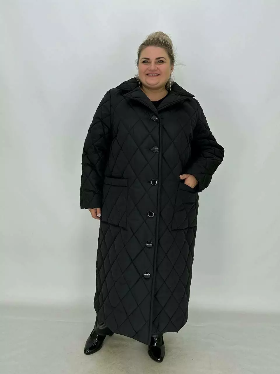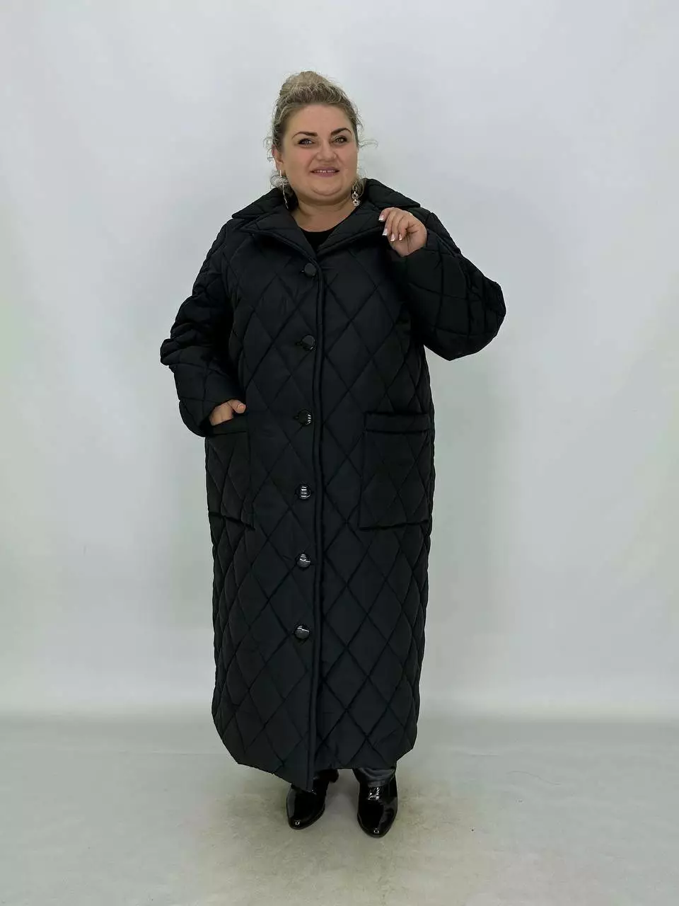 Подовжене стьобане пальто "Панянка 2" на ґудзиках Розміри 74-76