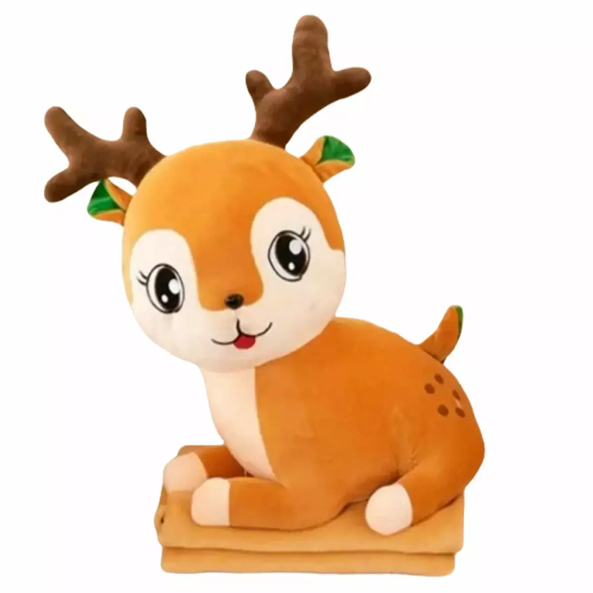 Подушка-іграшка 3в1 Бембі з пледом, коричневий