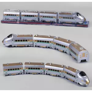 Кожен хлопчисько був би радий отримати в подарунок реалістичну модель поїзда. Поїзд з трьома вагончиками буде жваво пересуватися по кімнаті дитини. Оснащений звуковими ефектами (звук їзди / сигнал), а також вміє об'їжджати перешкоди. Працює від 4-х батарейок типу «АА» 1.5V (не входять комплект).