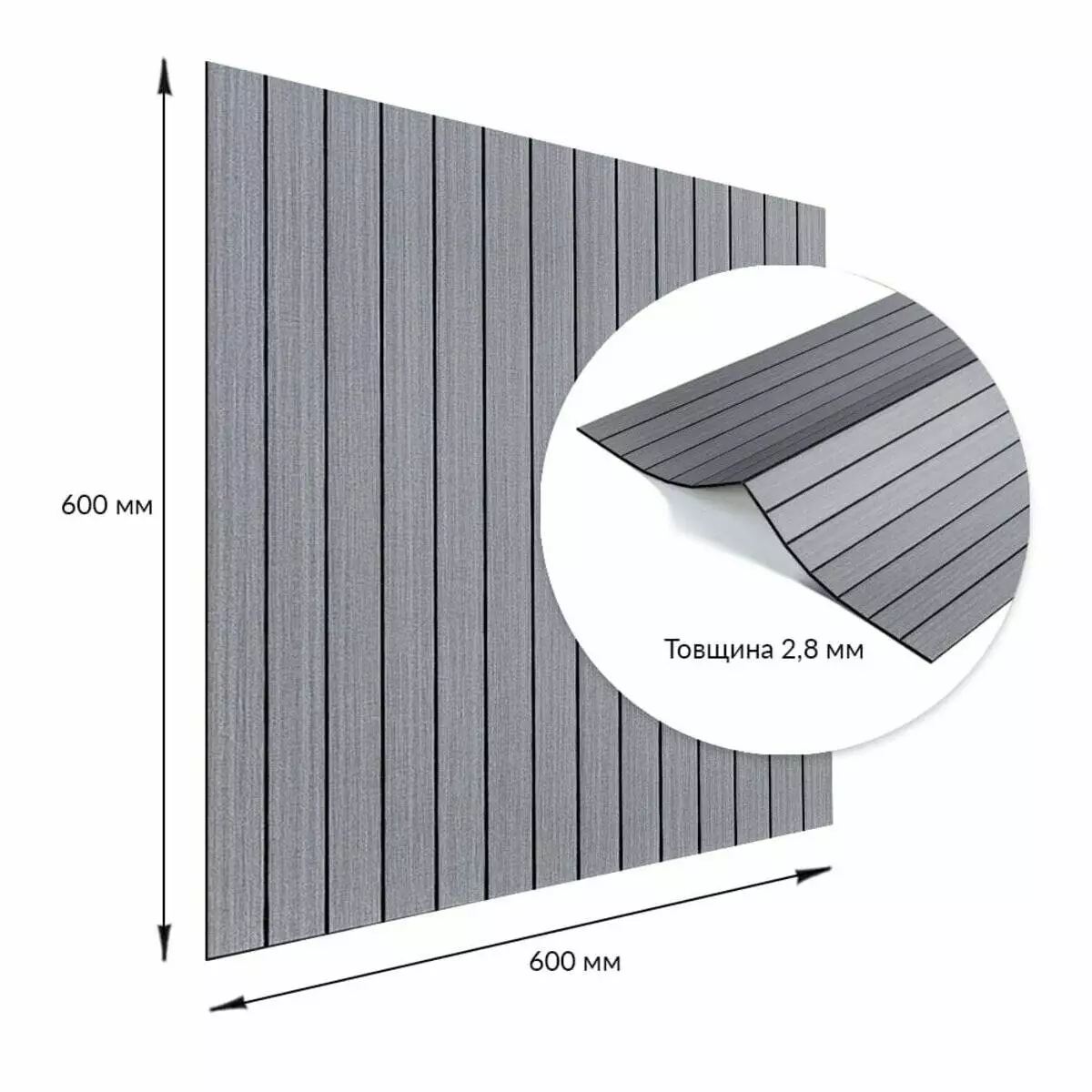 Розміри: 600х600х2,8 мм; 600х3000х2,8 мм