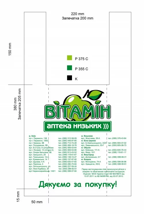 Наше предприятие оказывает услуги по изготовлению пакетов из полиэтилена высокого и низкого давления толщиной до 100 мкм. Печать на пакетах выполняется методом флексографии. Размер пакета, форму, толщину и количество цветов Вы выбираете сами.