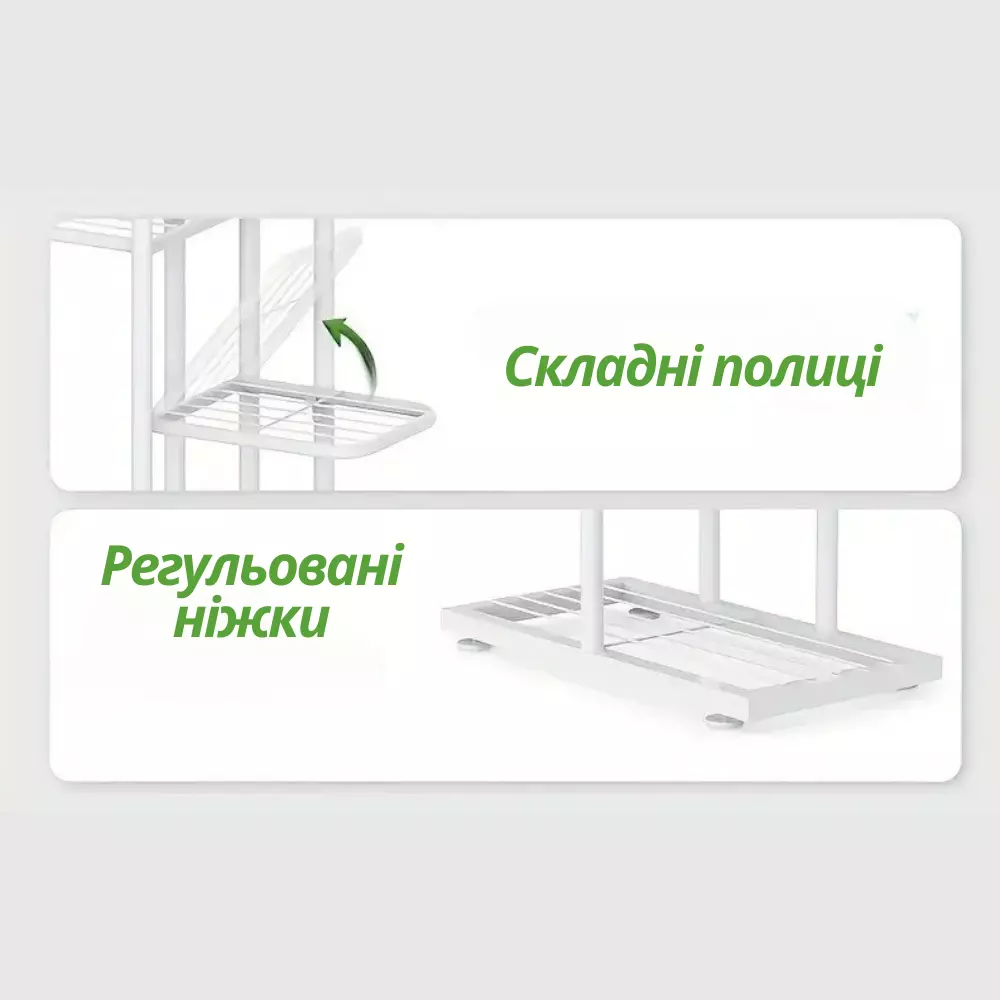 Гумові ніжки регулюються по висоті, завдяки чому стелаж стійкий