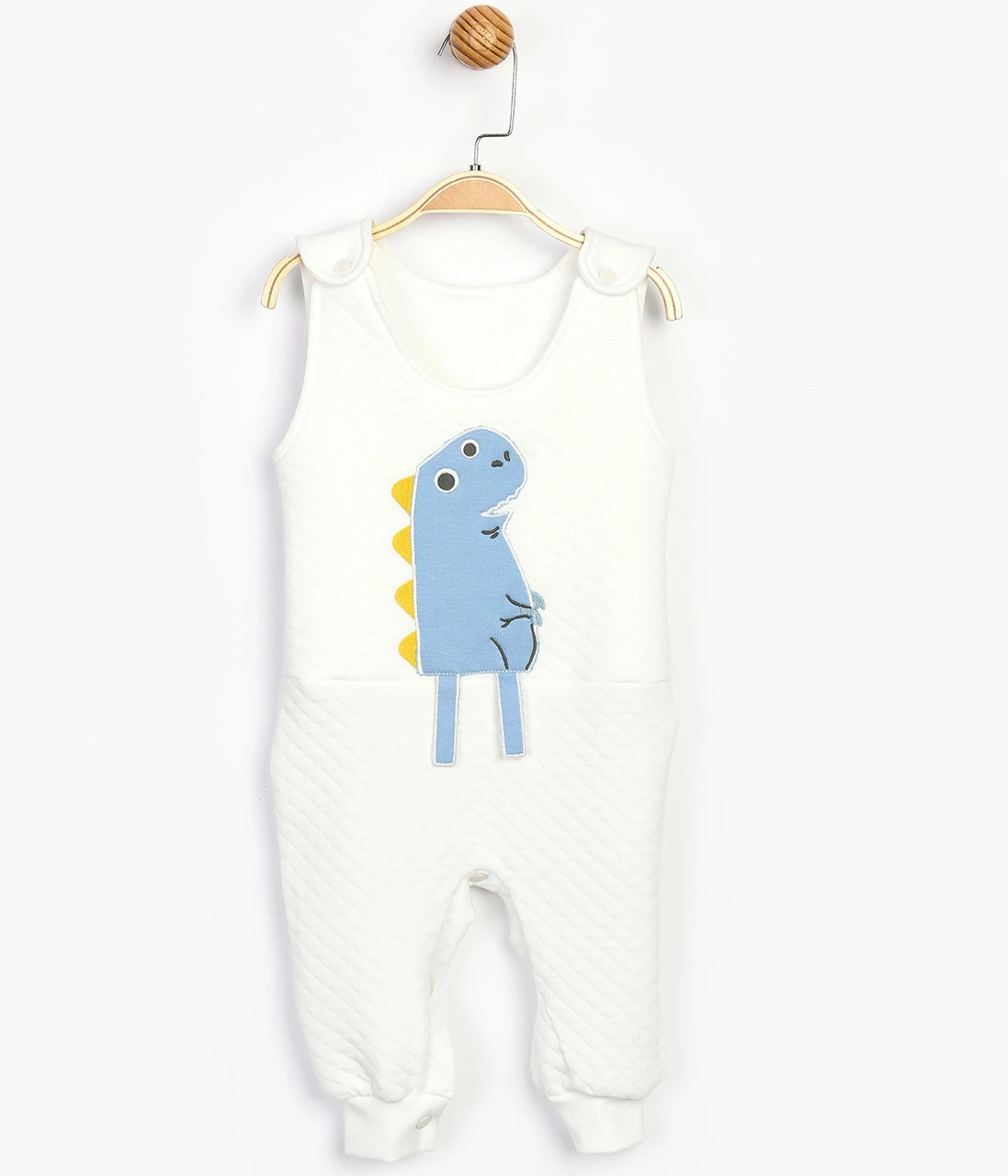 Полукомбинезон на двух пуговицах и на кнопках с открытыми ножками.