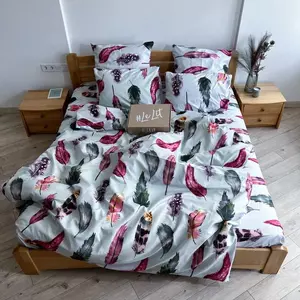 Полуторное постельное белье LeLIT 0008 белое с принтом "Яркие Перья"