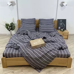 Полуторное постельное белье LeLIT 0833 темно-серое с принтом "Полоса"
