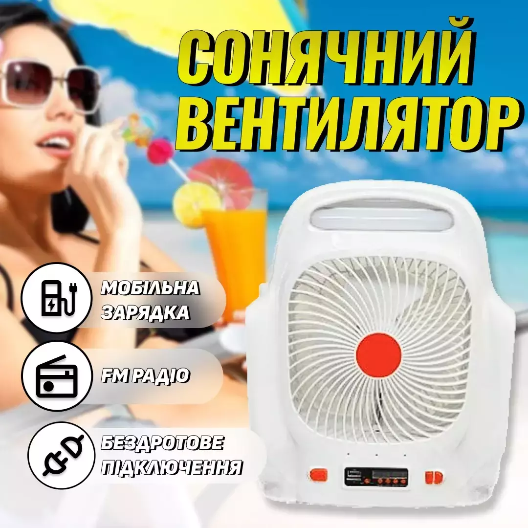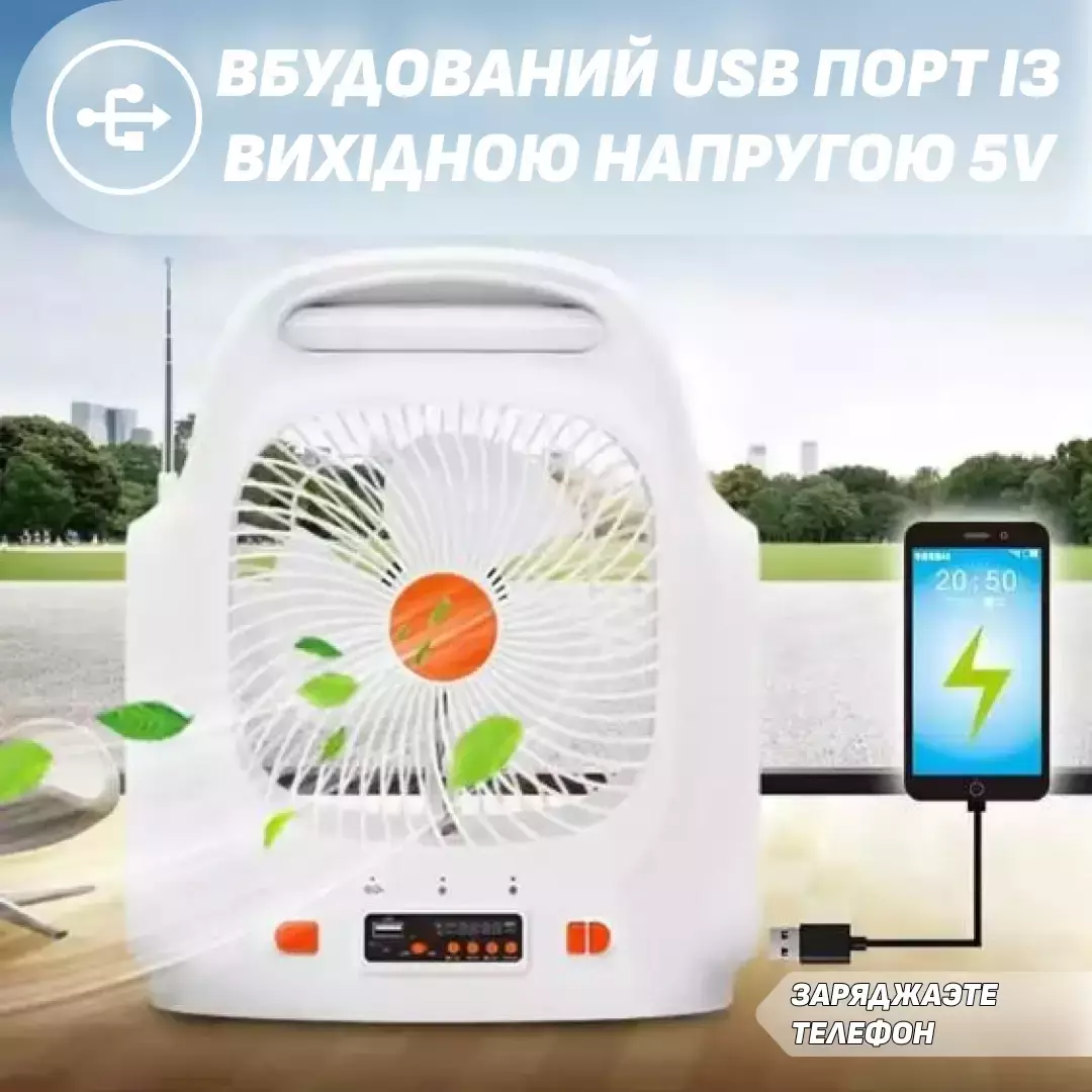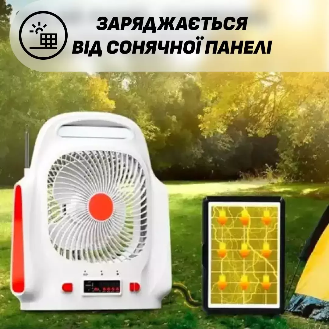 Портативный настольный вентилятор на солнечной батарее Andowl Q-F107 зарядка телефона от usb и радио 4в1