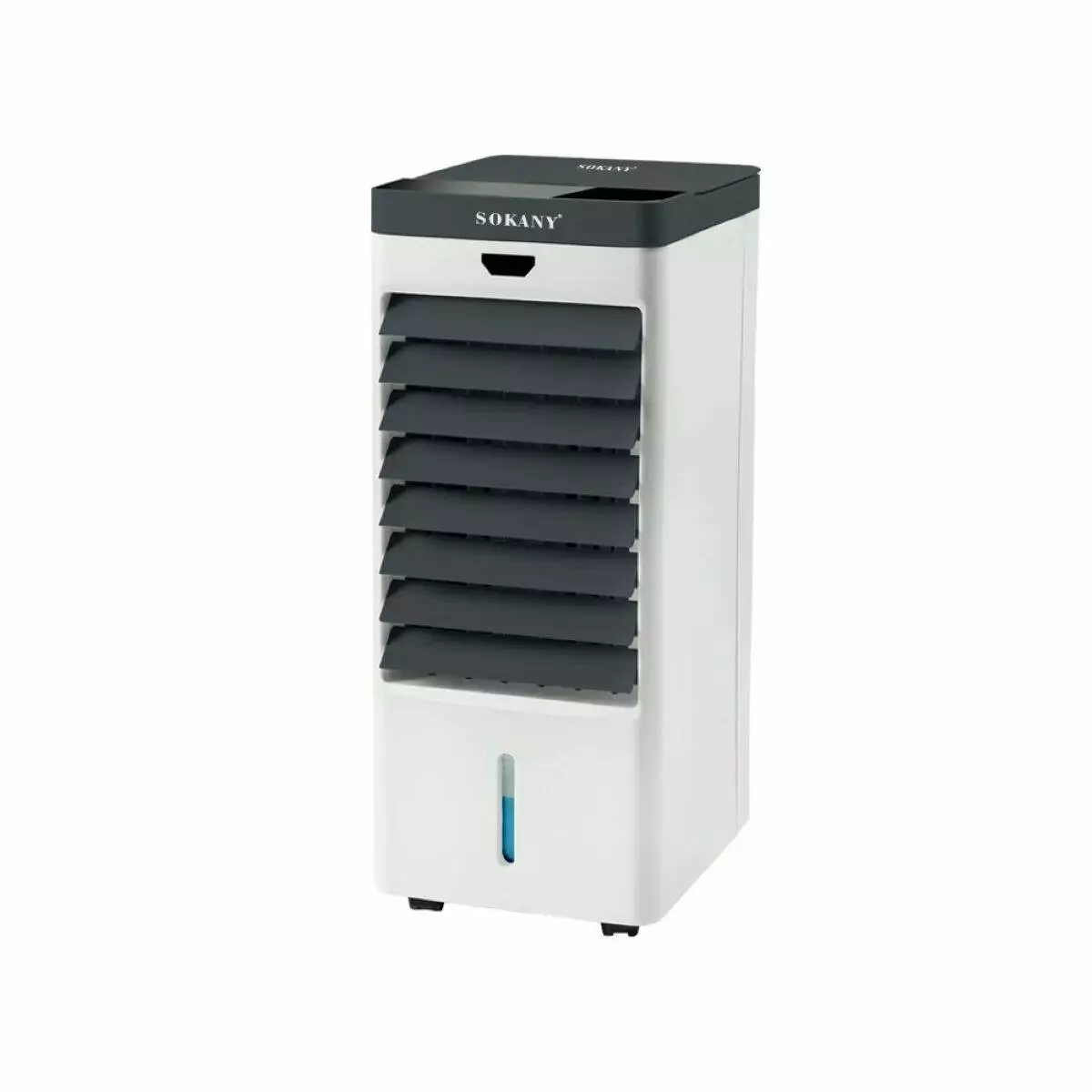 Мобільний охолоджувач повітря SOKANY із функцією іонізації поєднує компактність, функціональність і простоту використання. Завдяки резервуару на 5 л і трьом швидкостям обдування (7,5 / 8,5 / 9,5 м/с), пристрій забезпечує ефективне охолодження та зволоження повітря в приміщенні. Технологія водоспаду та система фільтрації сприяють комфортному мікроклімату у спекотну погоду.