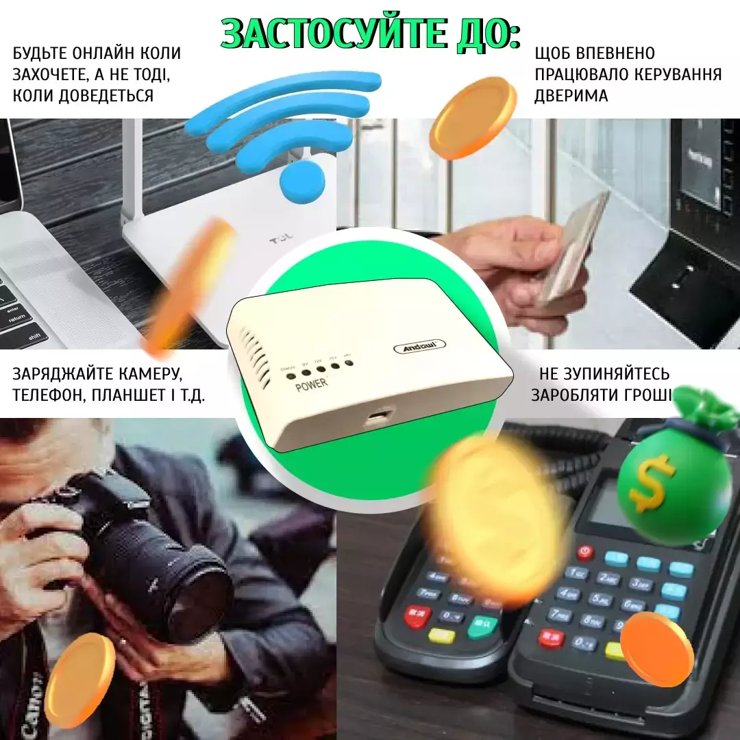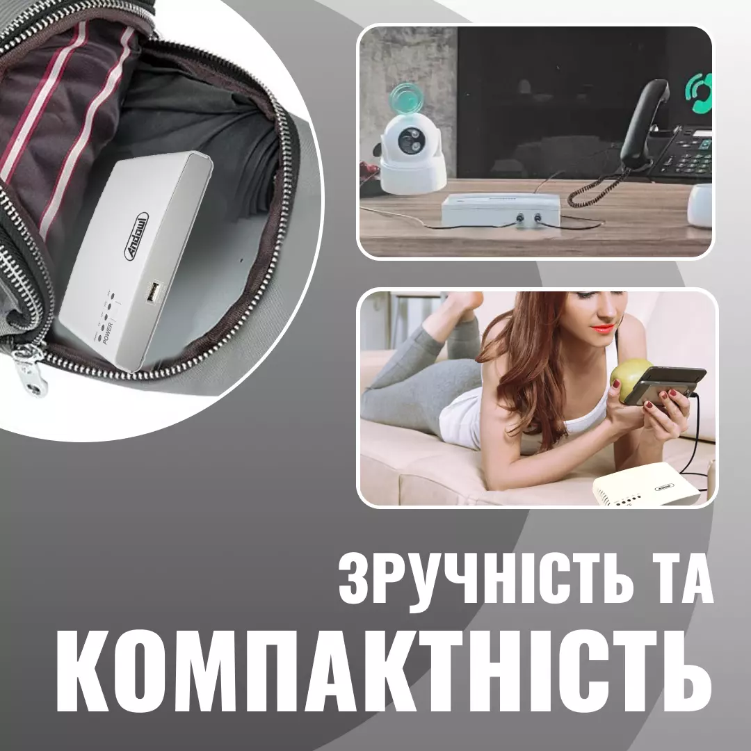 Этот мини-ИБП идеально подходит для активного отдыха, аварийных