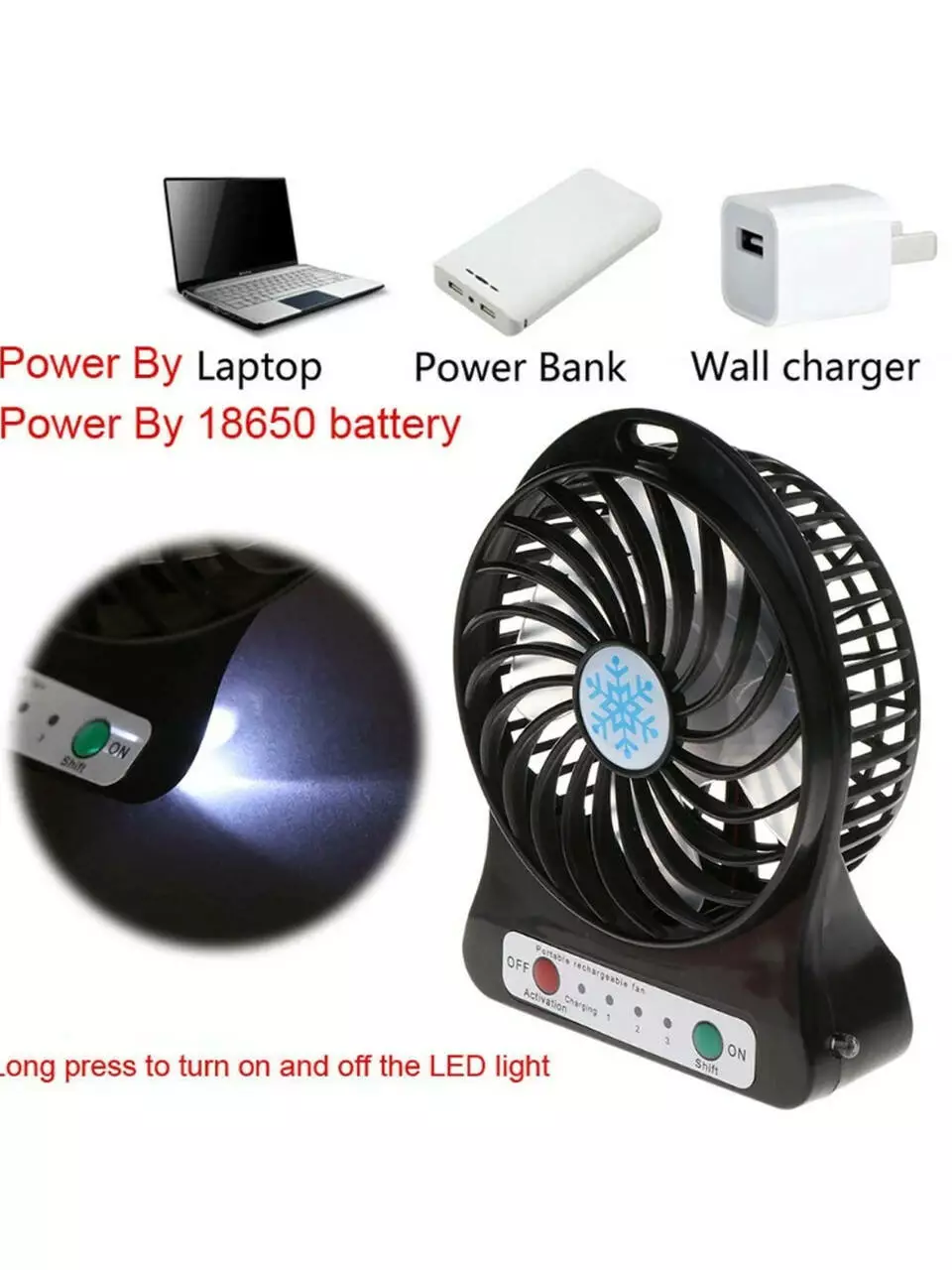 ◉Портативность: легкий и компактный дизайн позволяет использовать его как настольный вентилятор или устанавливать на переднюю панель автомобиля. Также предусмотрена петелька для подвешивания.
