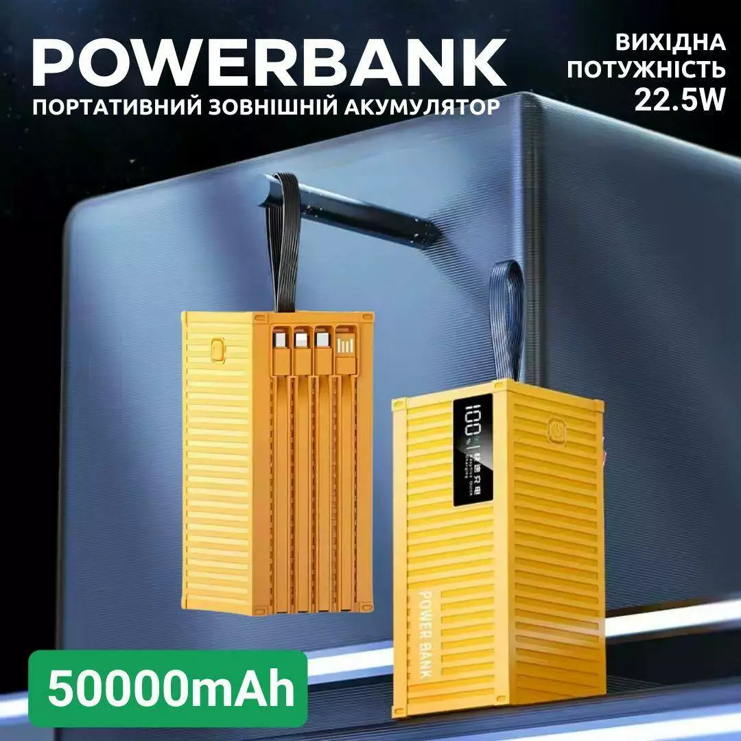 Портативный внешний аккумулятор Powerbank 50000 мАч с быстрой