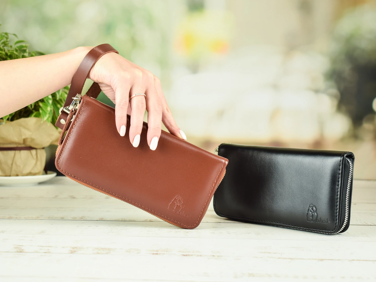 Застібається на металеву блискавку. Передбачено ремінь на руку з