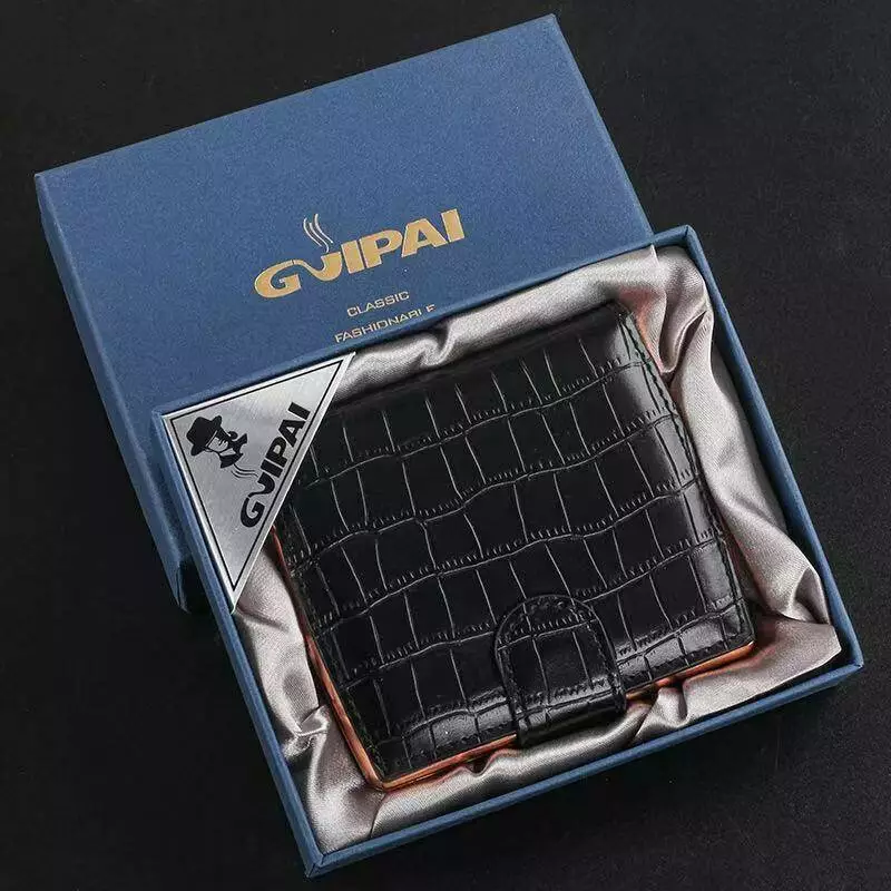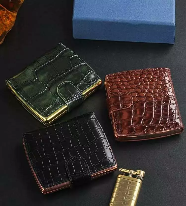 Элегантный и функциональный аксессуар для хранения сигарет. Корпус выполнен из прочного металла с декоративной обложкой, имитирующей кожу крокодила, в стильном чёрном цвете с глянцевым покрытием. Серебристые элементы по краям придают изделию премиальный вид. Оснащён надёжной застёжкой, обеспечивающей безопасное закрытие.