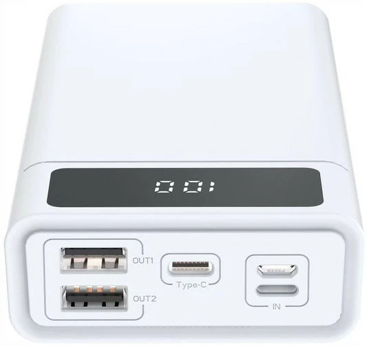 Расположенный в верхней части павербанка встроенный четкий светодиодный дисплей сообщит нам о текущем уровне заряда батареи - это позволит свободно планировать зарядку наших электронных устройств и самого power Bank, что еще больше гарантирует непрерывность работы нашего телефона или планшета, особенно во время длительных поездок.