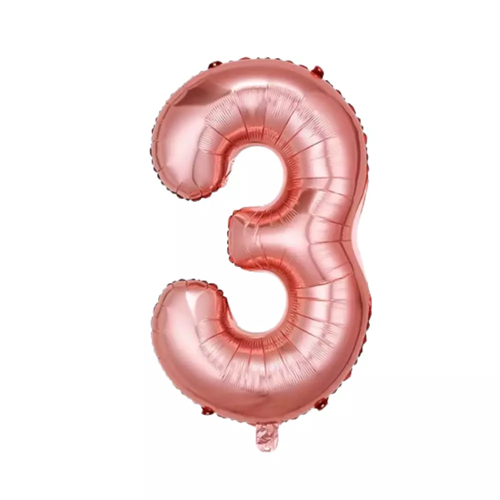 Фольгована куля у формі цифри «3» кольору рожеве золото - стильна