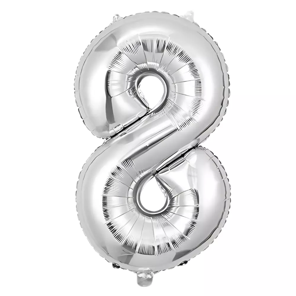 Фольгована куля у формі цифри «8» сріблястого кольору -