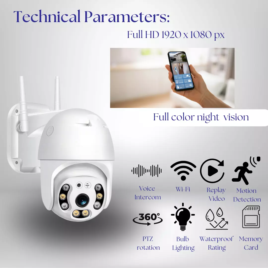 Підвищте свою безпеку за допомогою розумної поворотної зовнішньої IP-камери . Розроблена для цілодобового моніторингу , ця Full HD-камера забезпечує кришталево чітке відео, нічне бачення та сповіщення в режимі реального часу. Незалежно від того, чи захищає ваш будинок, офіс, магазин чи ресторан, вона забезпечує віддалений доступ з будь-якої точки світу через Wi-Fi або Ethernet . Виявлення руху, автоматичне відстеження та двосторонній аудіозв'язок роблять її незамінним рішенням для безпеки.