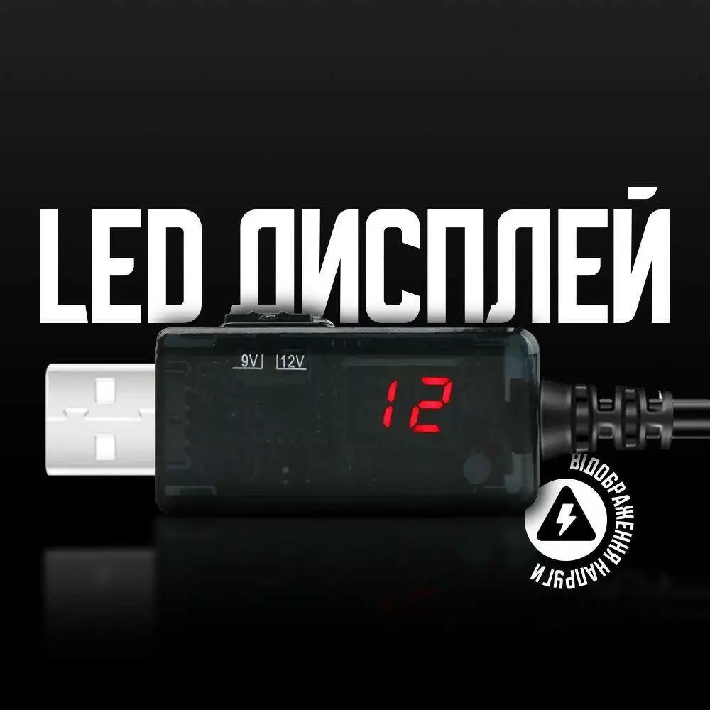 Кабель оснащен удобным переключателем, который позволяет выбрать необходимое напряжение - 9 или 12 Вольт. Это расширяет сферу применения кабеля, позволяя использовать его с широким спектром устройств.