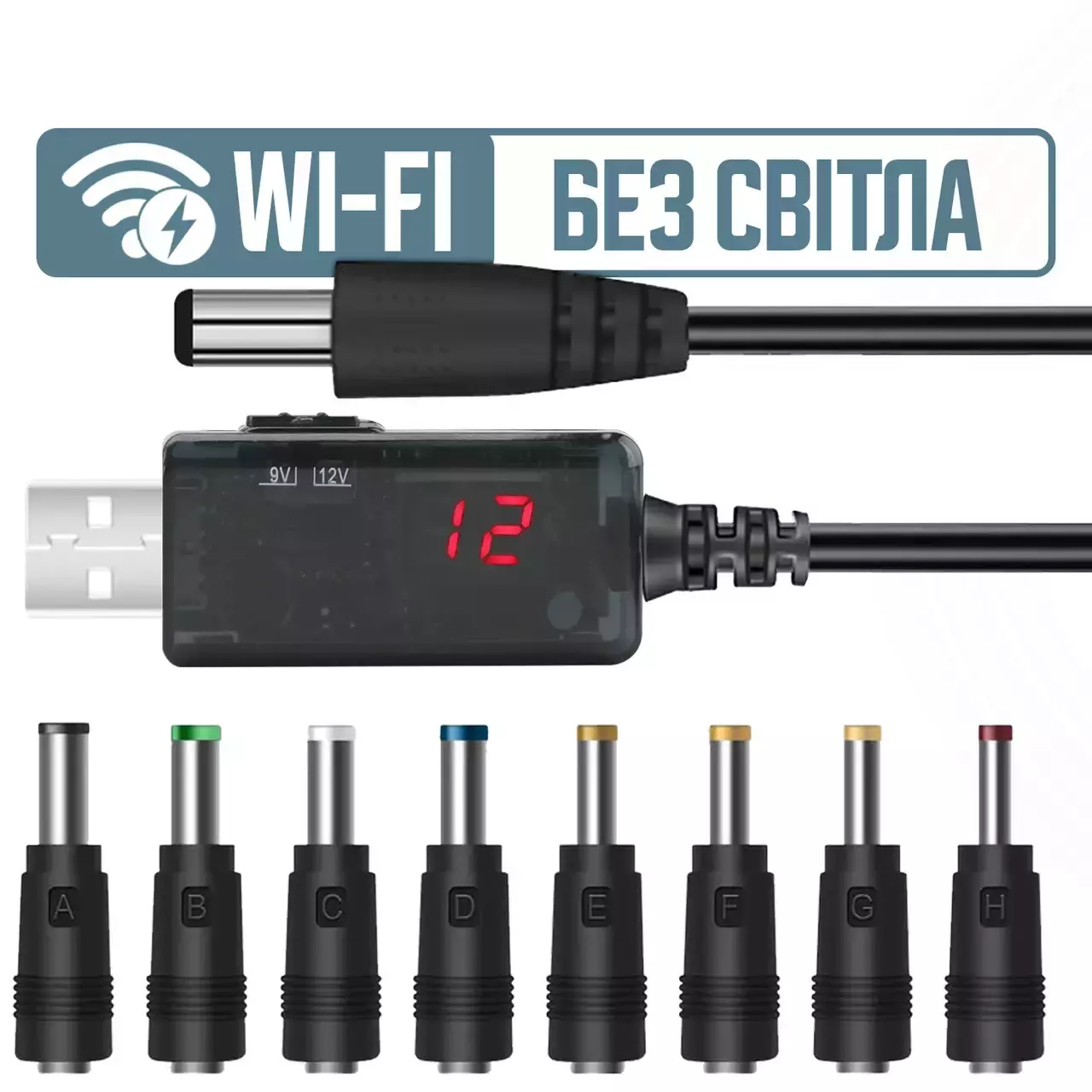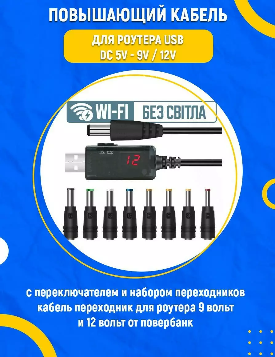 Повышающий кабель для роутера USB DC 5V - 9V / 12V 90 см с переключателем и набором 8 переходников кабель
