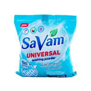 Пральний порошок SaVam Universal -універсальний засіб для ефективного прання як кольорових, так і білих ткани.Підходить для ручного та машинного прання при будь-яких температурах.Не залишає розводів, добре виполіскується та має приємний легкий аромат.